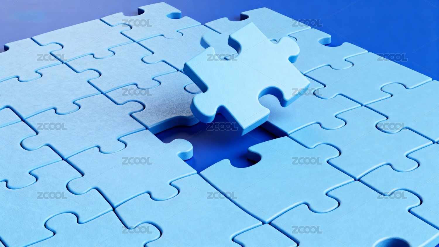 蓝色的拼图游戏与一块缺失的拼图