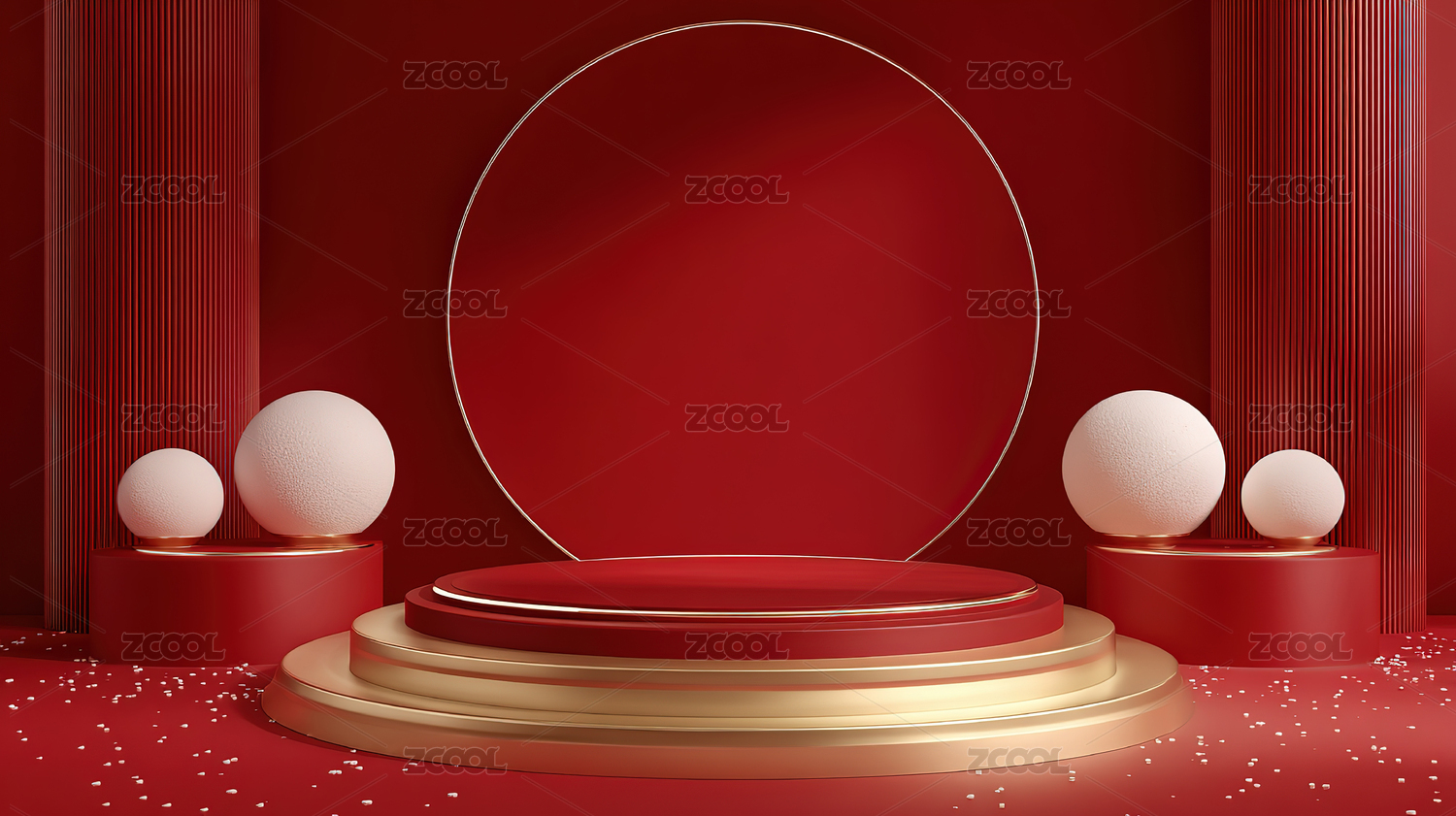 红色圆形展台与金色装饰