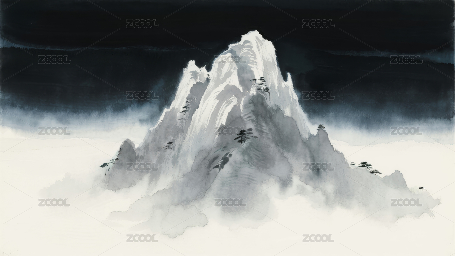 白雪皑皑的群山在晴朗的天空中俯瞰