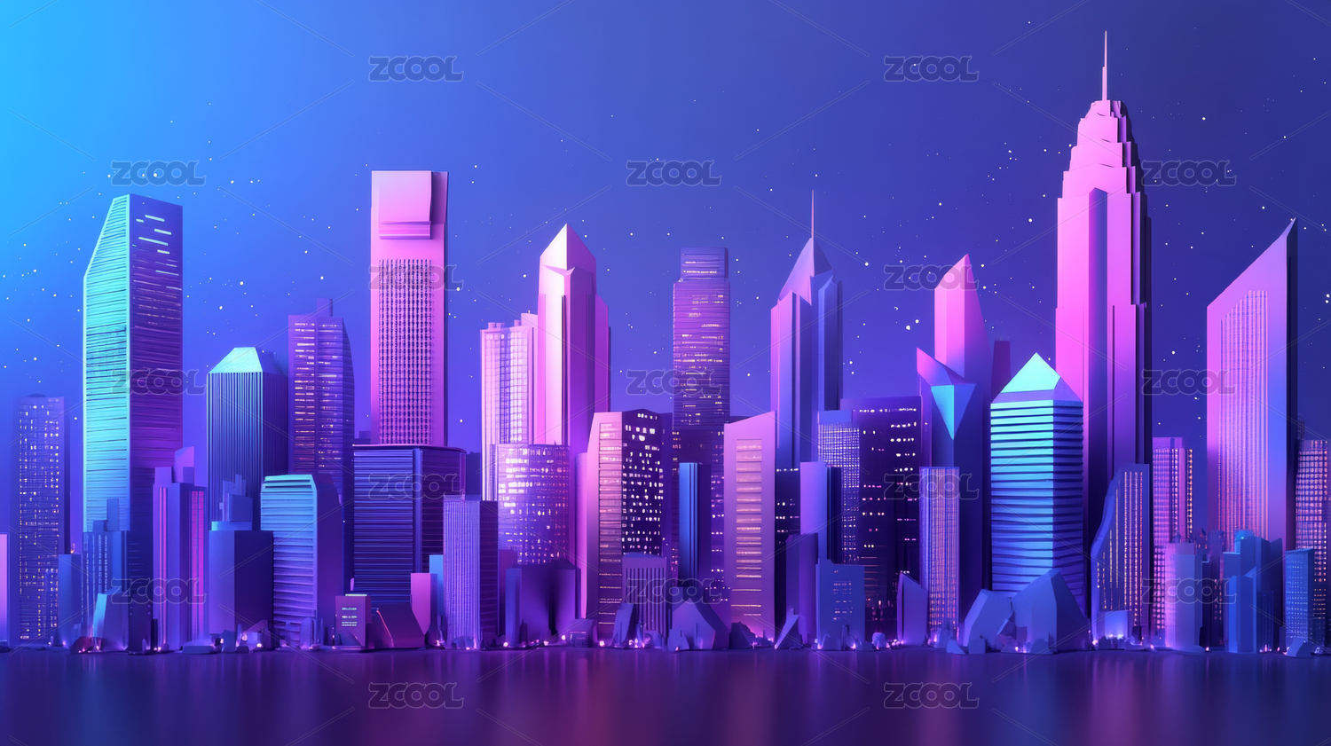 紫色调的城市天际线