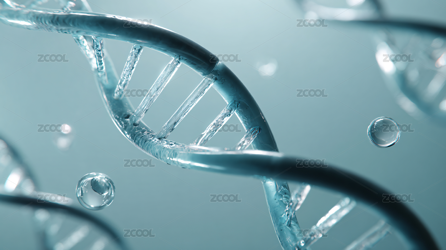 蓝色DNA双螺旋水珠背景