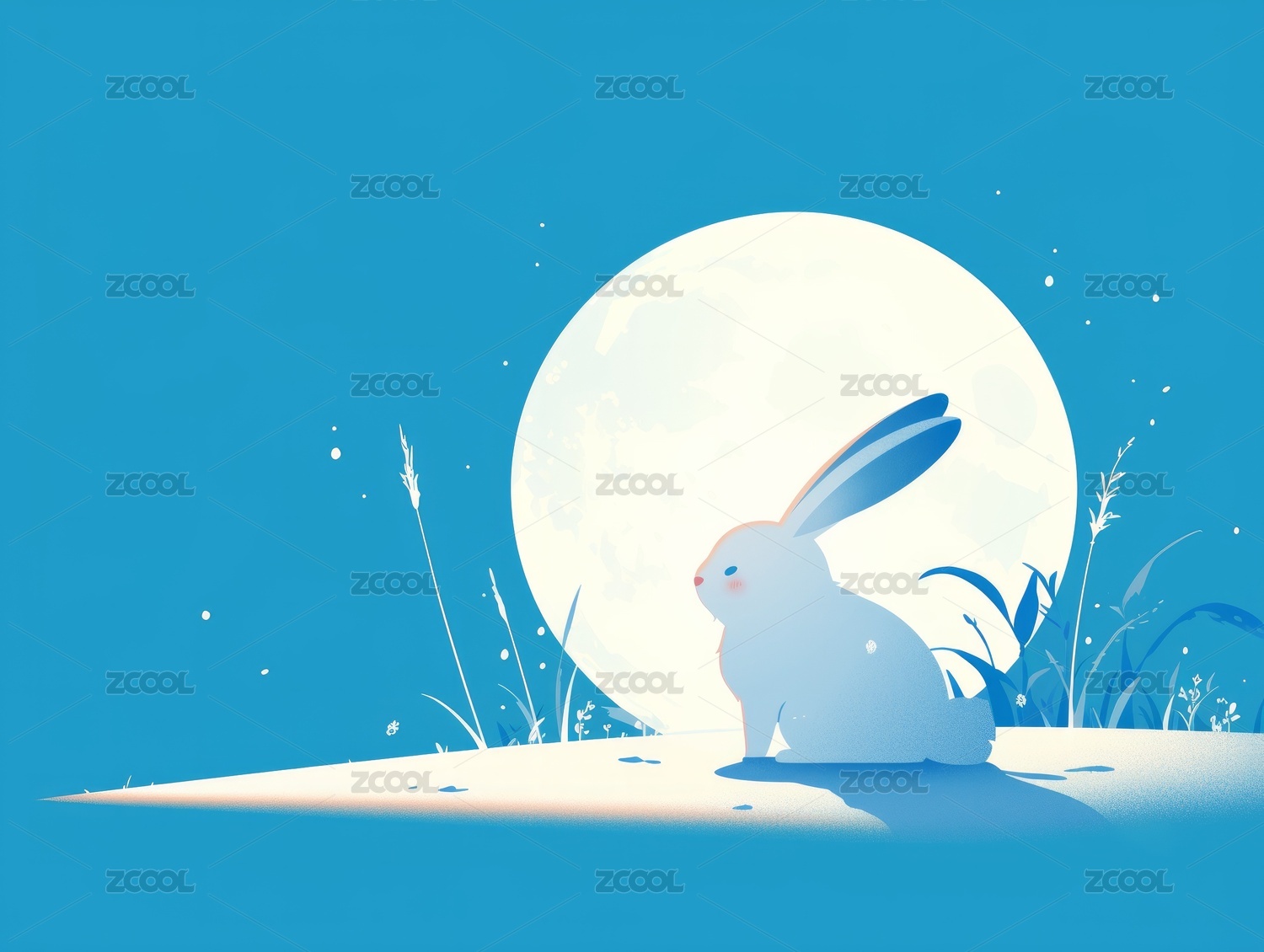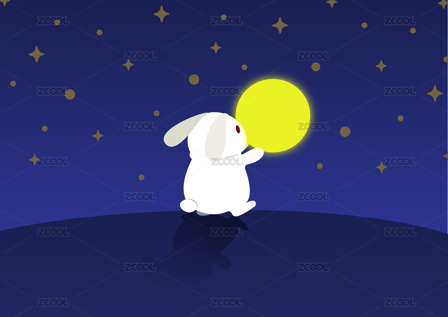 中秋节,玉兔,奔月,矢量,手绘,插画,月亮,兔子,扁平,团圆