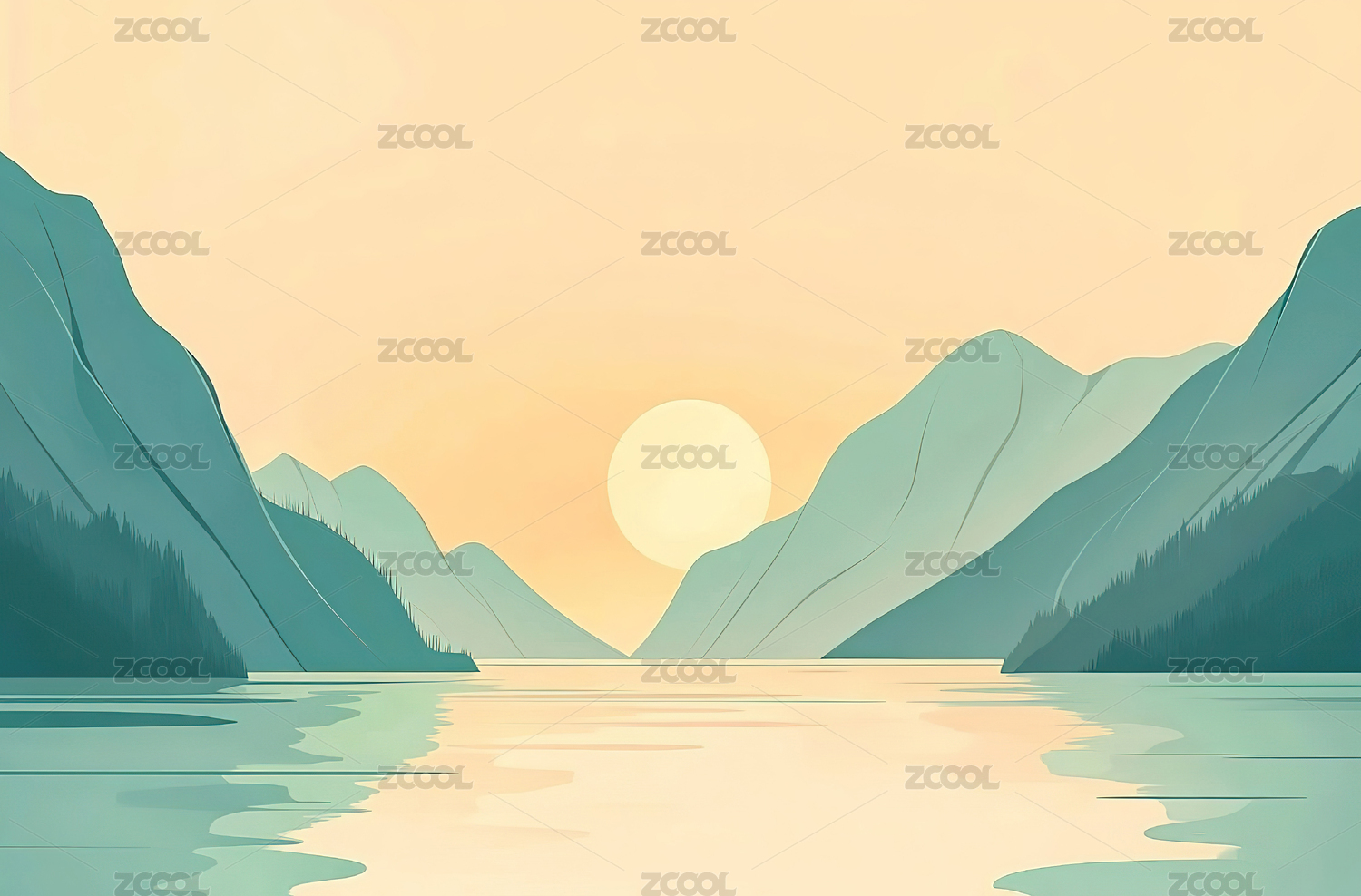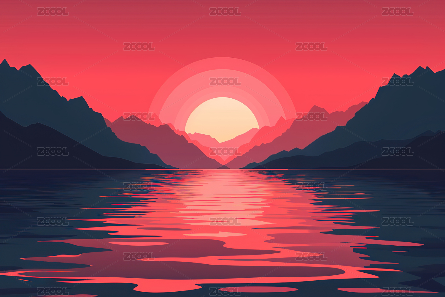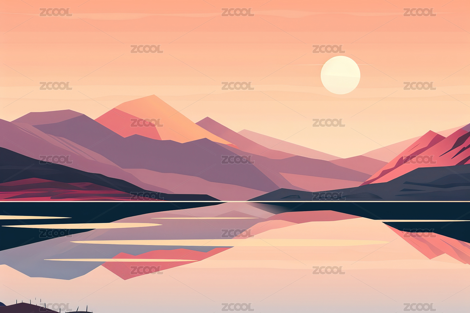 天空,自然,高山,户外,AI数字艺术,日落,宁静,风景,地形,树