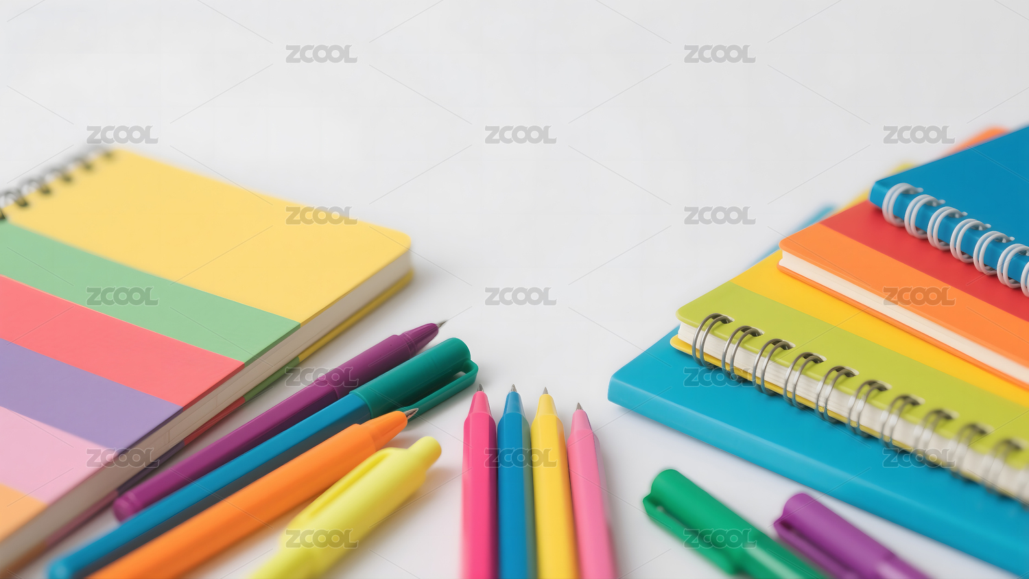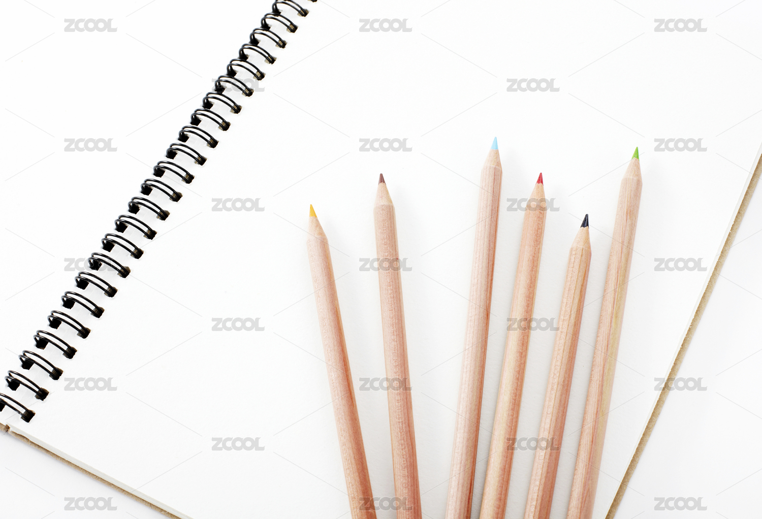 拍成上升曲线的彩色铅笔和白色的纸张背景