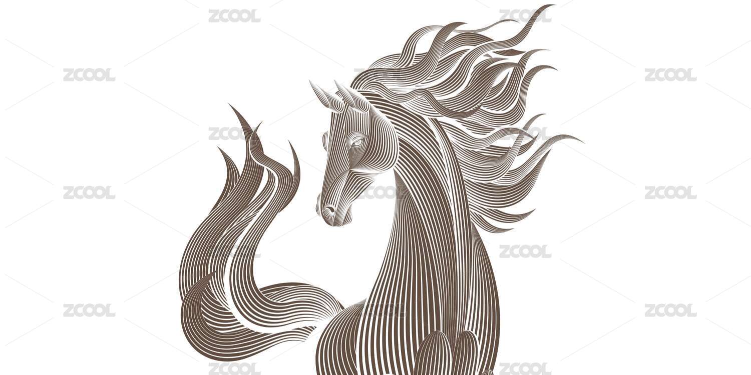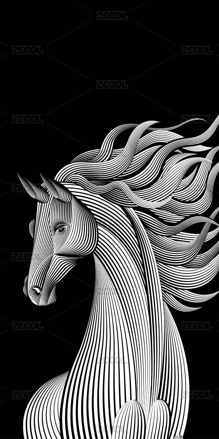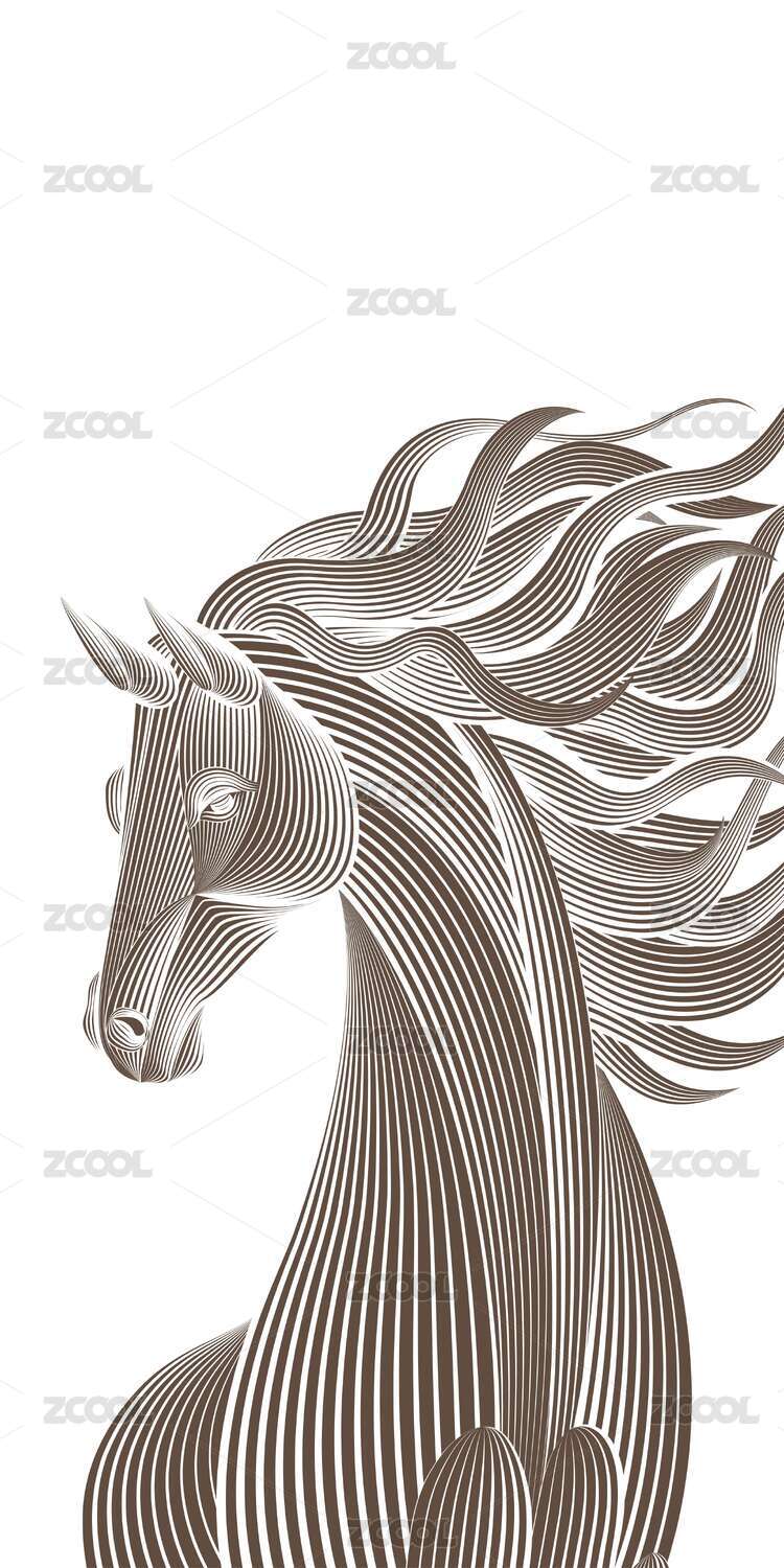 简约线条马头插画