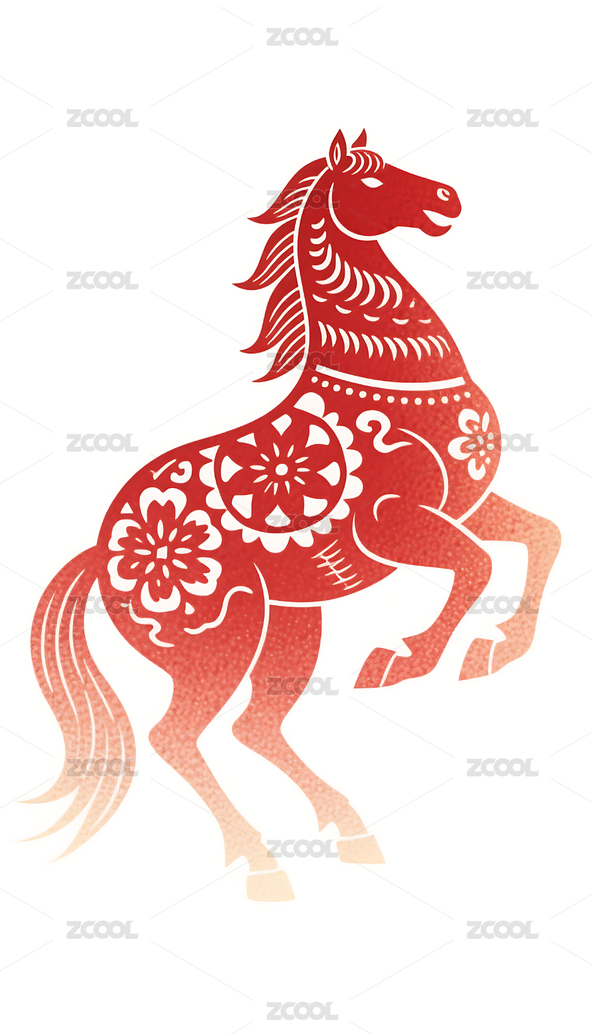 红色雕花骏马与花卉图案