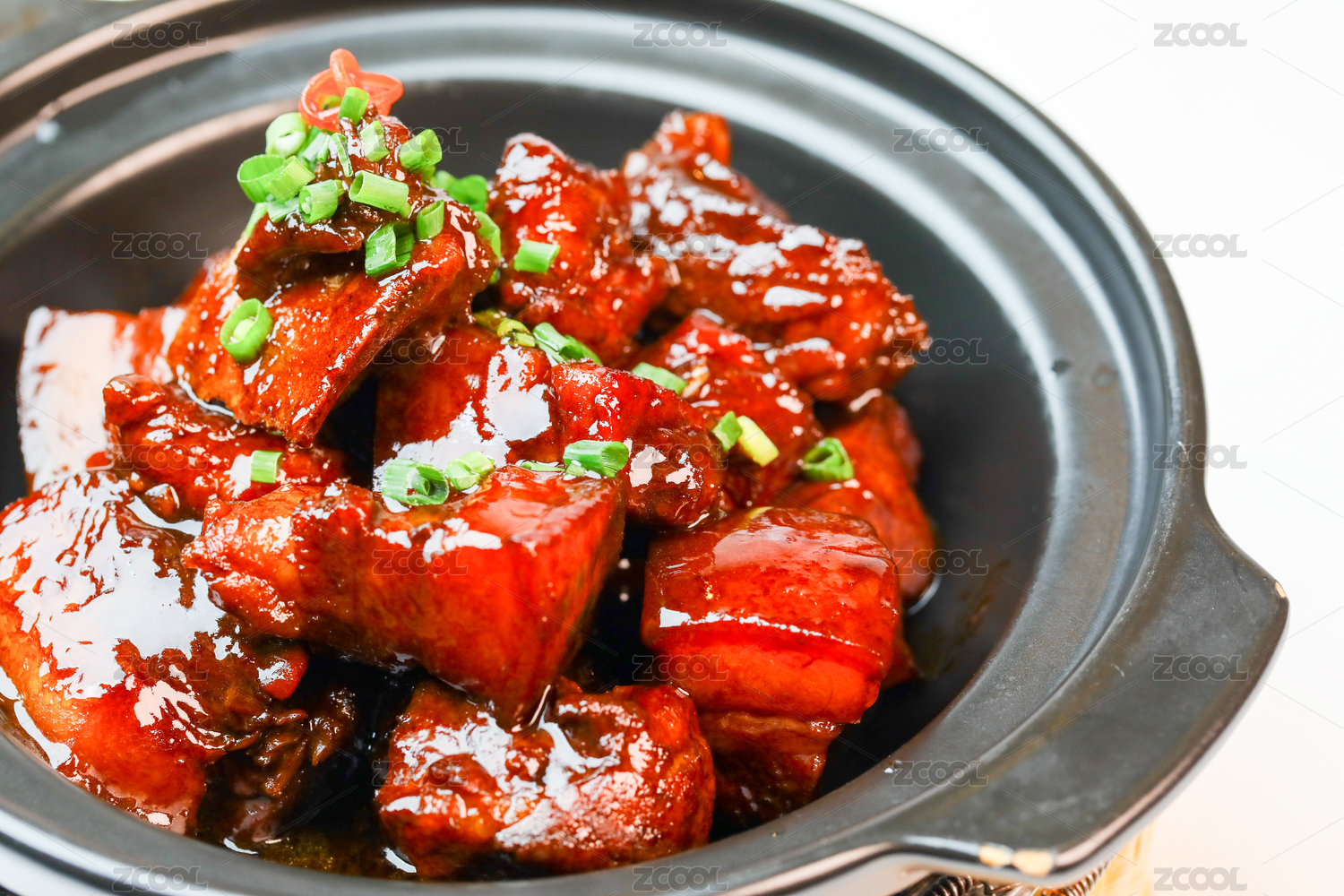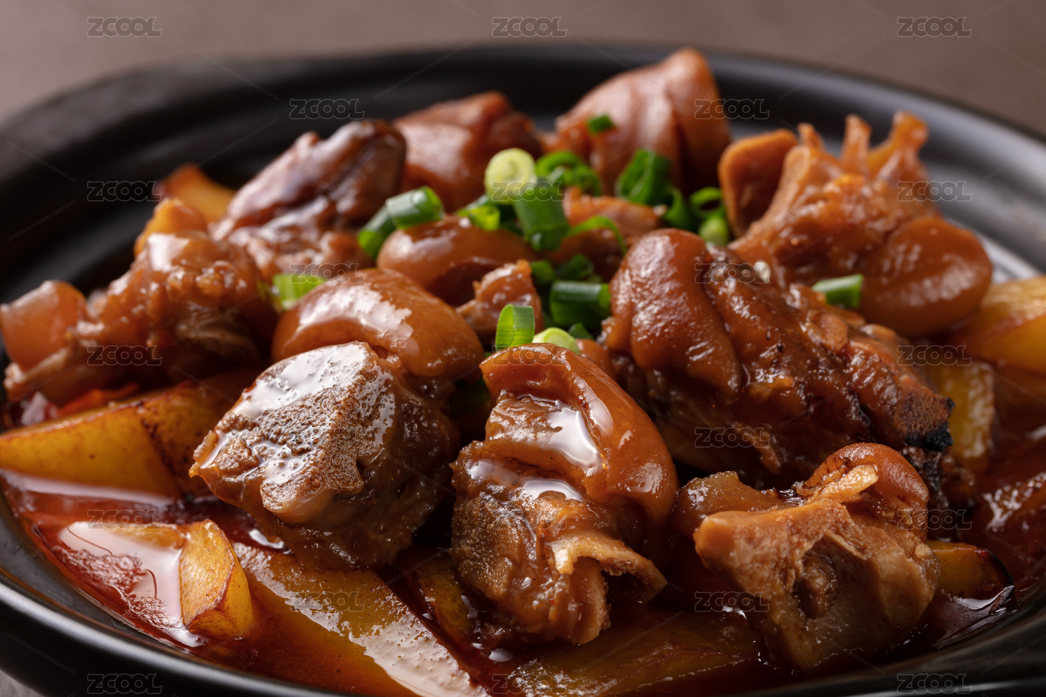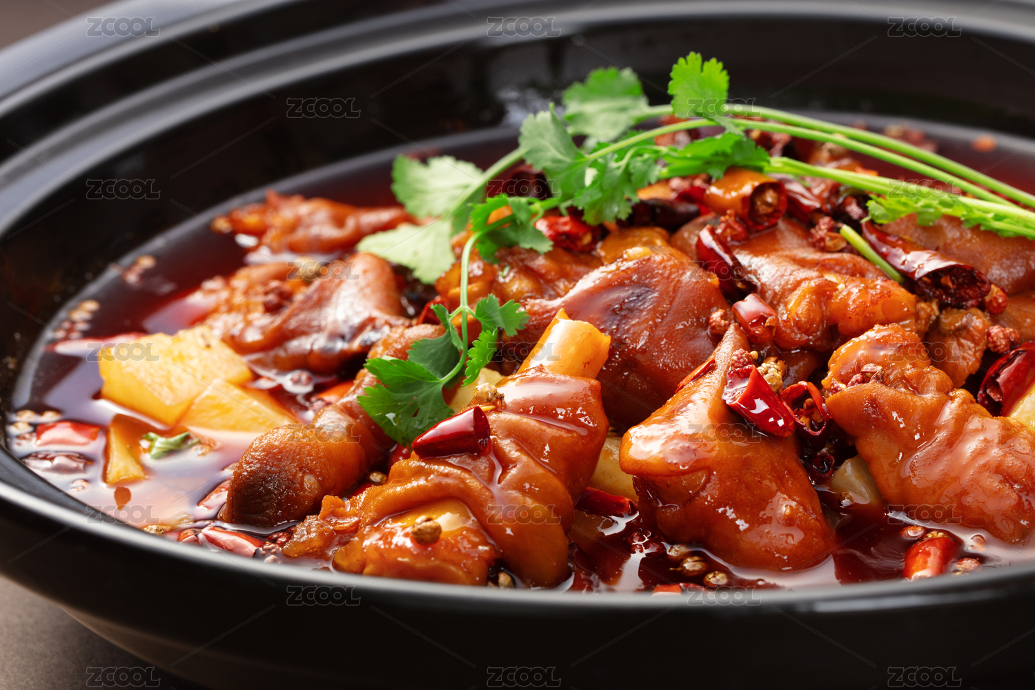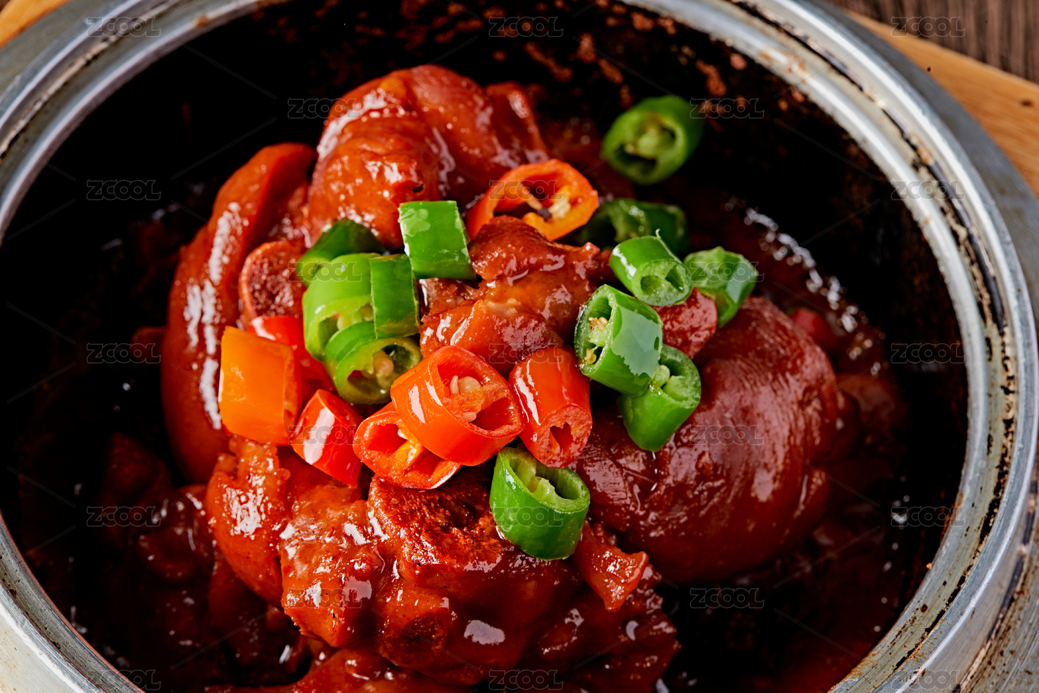 黑色砂锅的麻辣红烧猪蹄猪肘