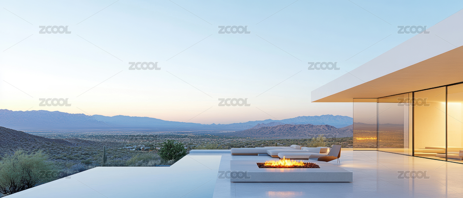 沙漠中的白色流线型艺术豪宅汽车广告背景