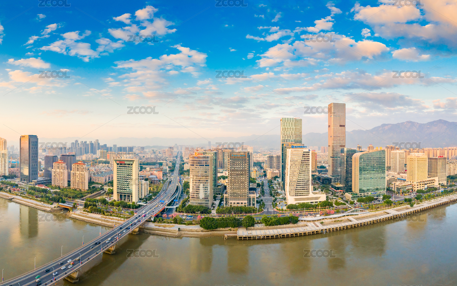 中国福建省福州市闽江两岸城市风光
