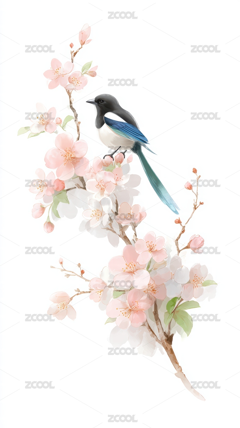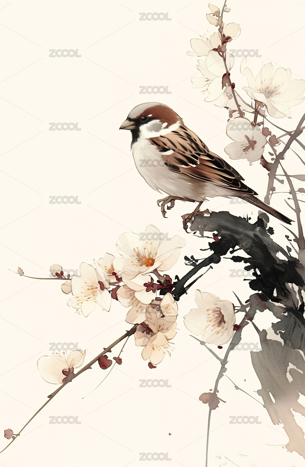 鸟,动物,花,树,古风,意境,春天,自然,国画,工笔