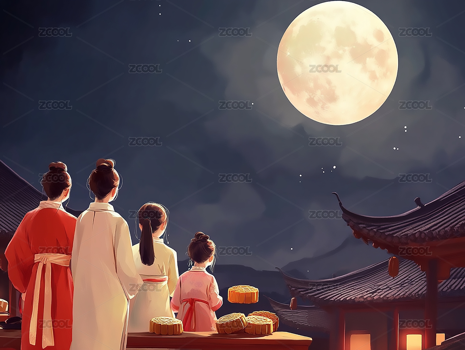 庭院中的中秋团圆夜