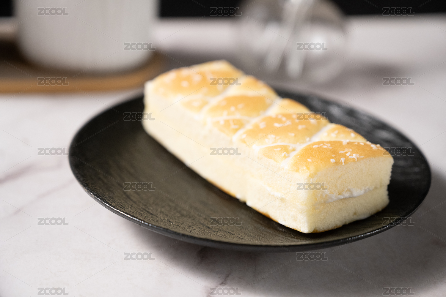 桌面上的盘子里的美味可口的椰蓉蛋糕