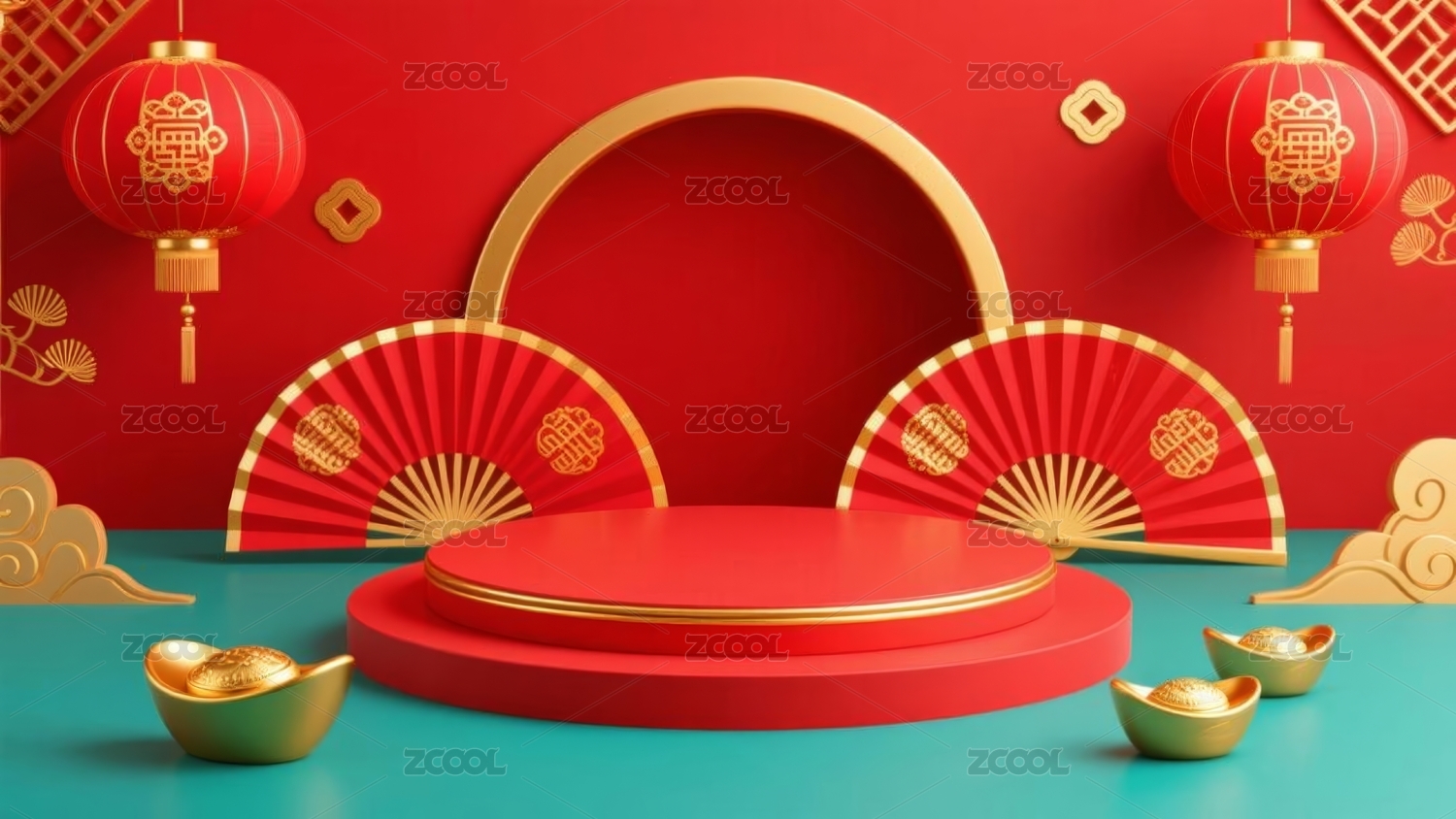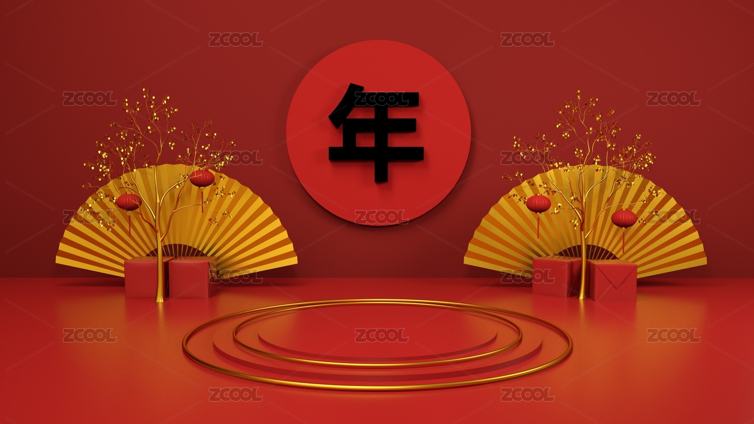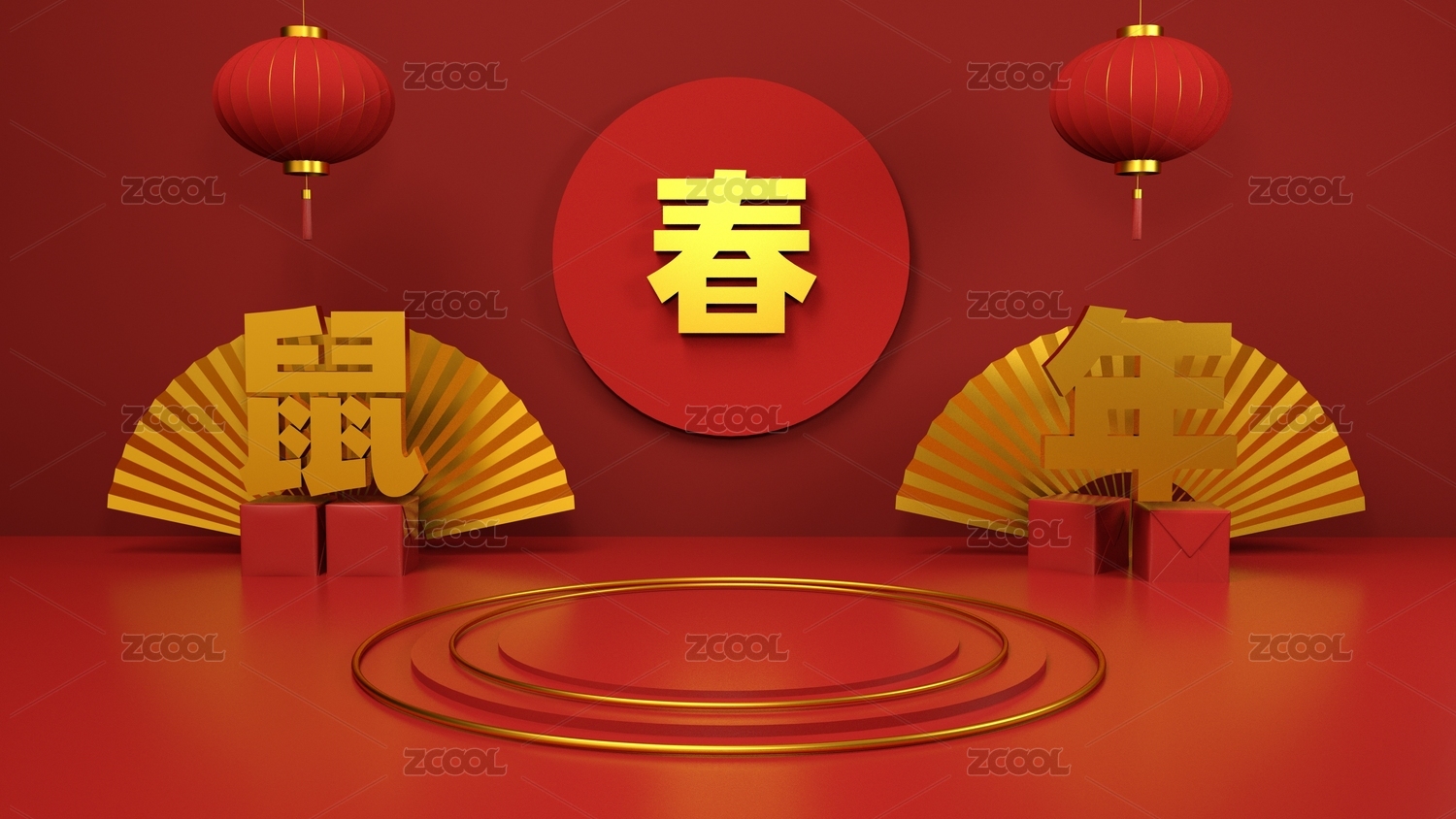 中国,春节,新春,喜庆的,红色,新年,鼠年,展台,展示台,三维