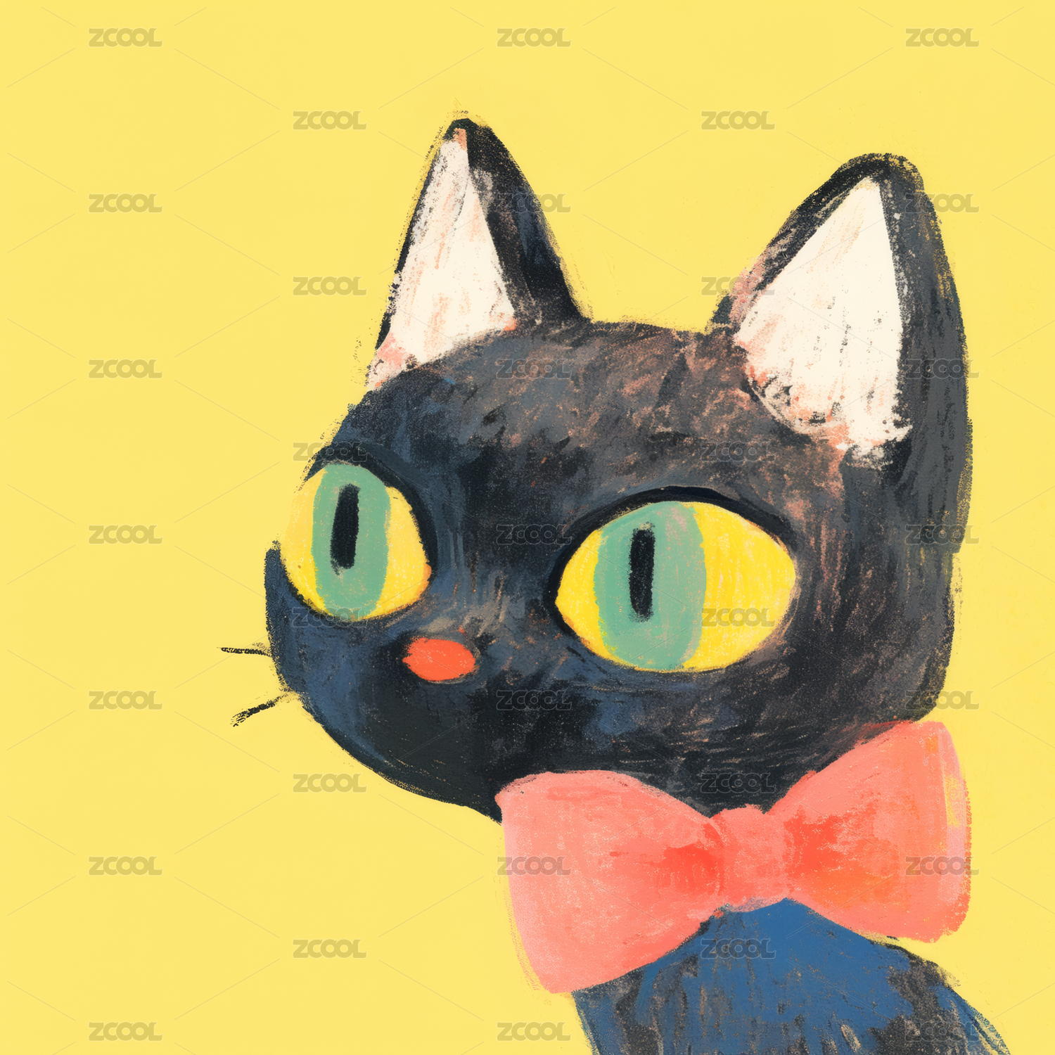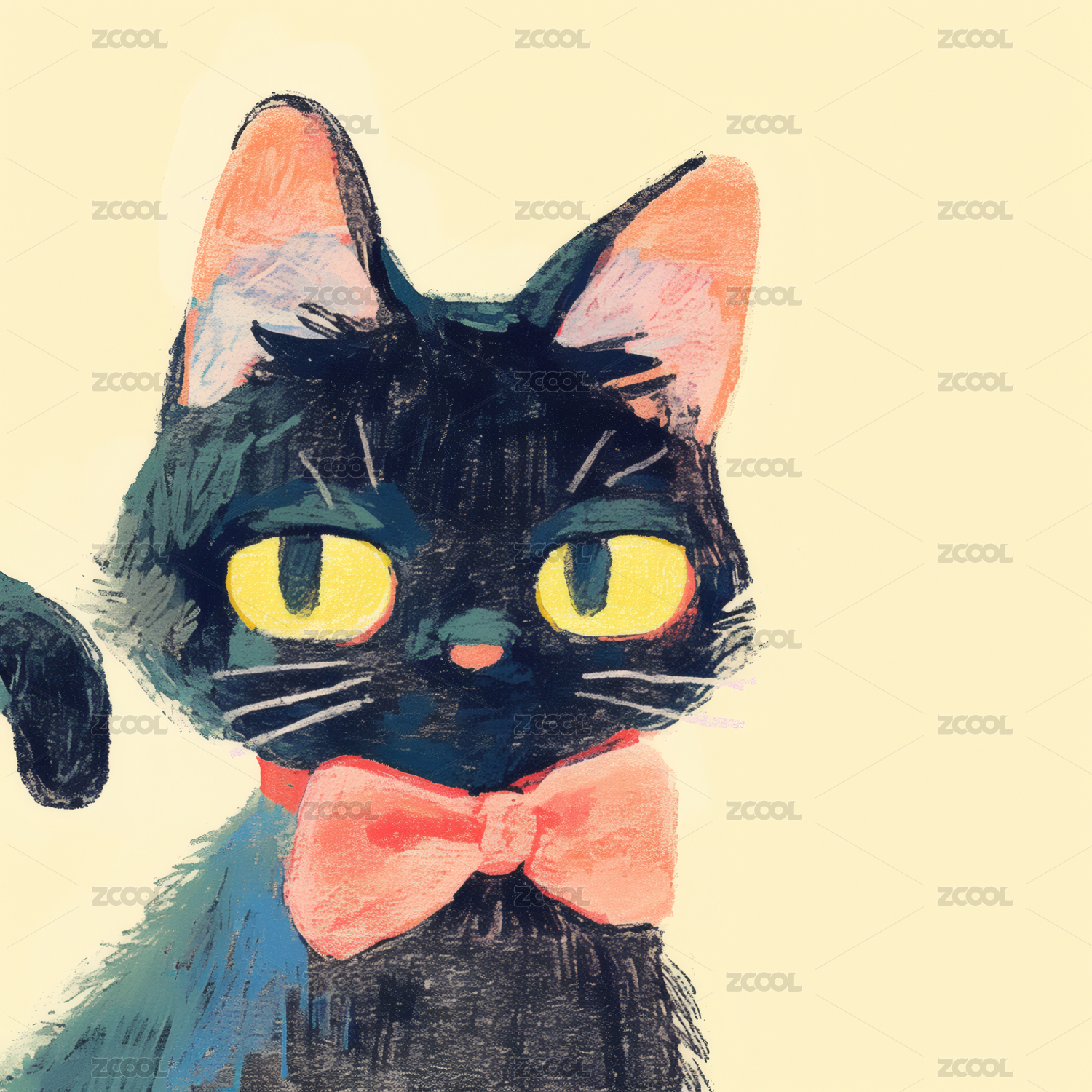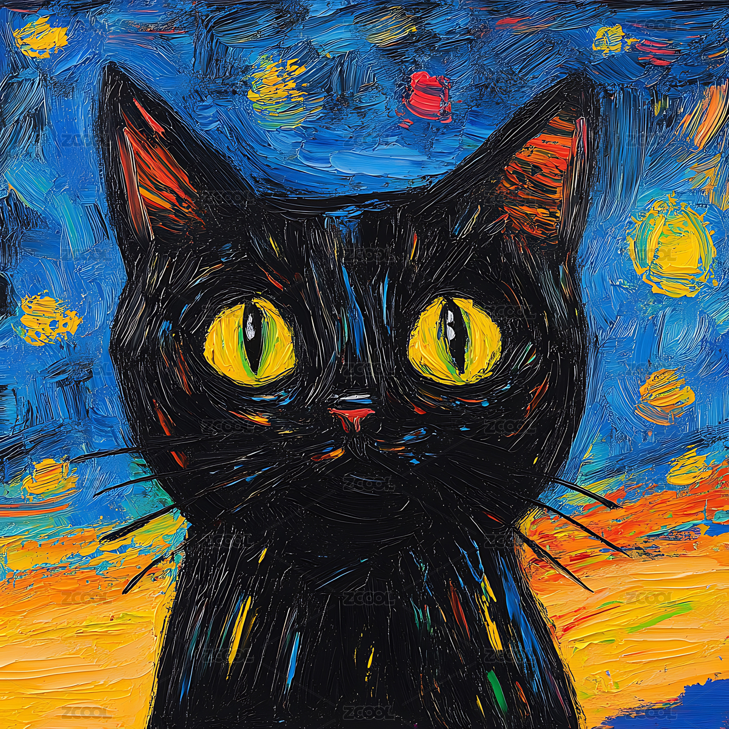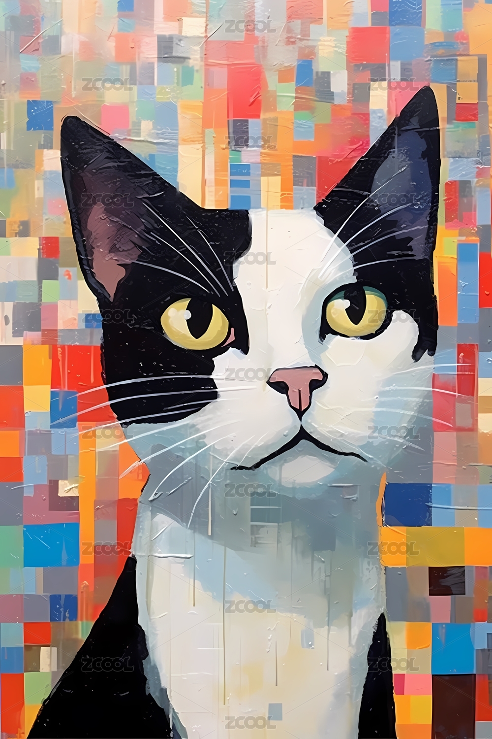 带珍珠耳环的猫宠物肖像画印象派装饰油画