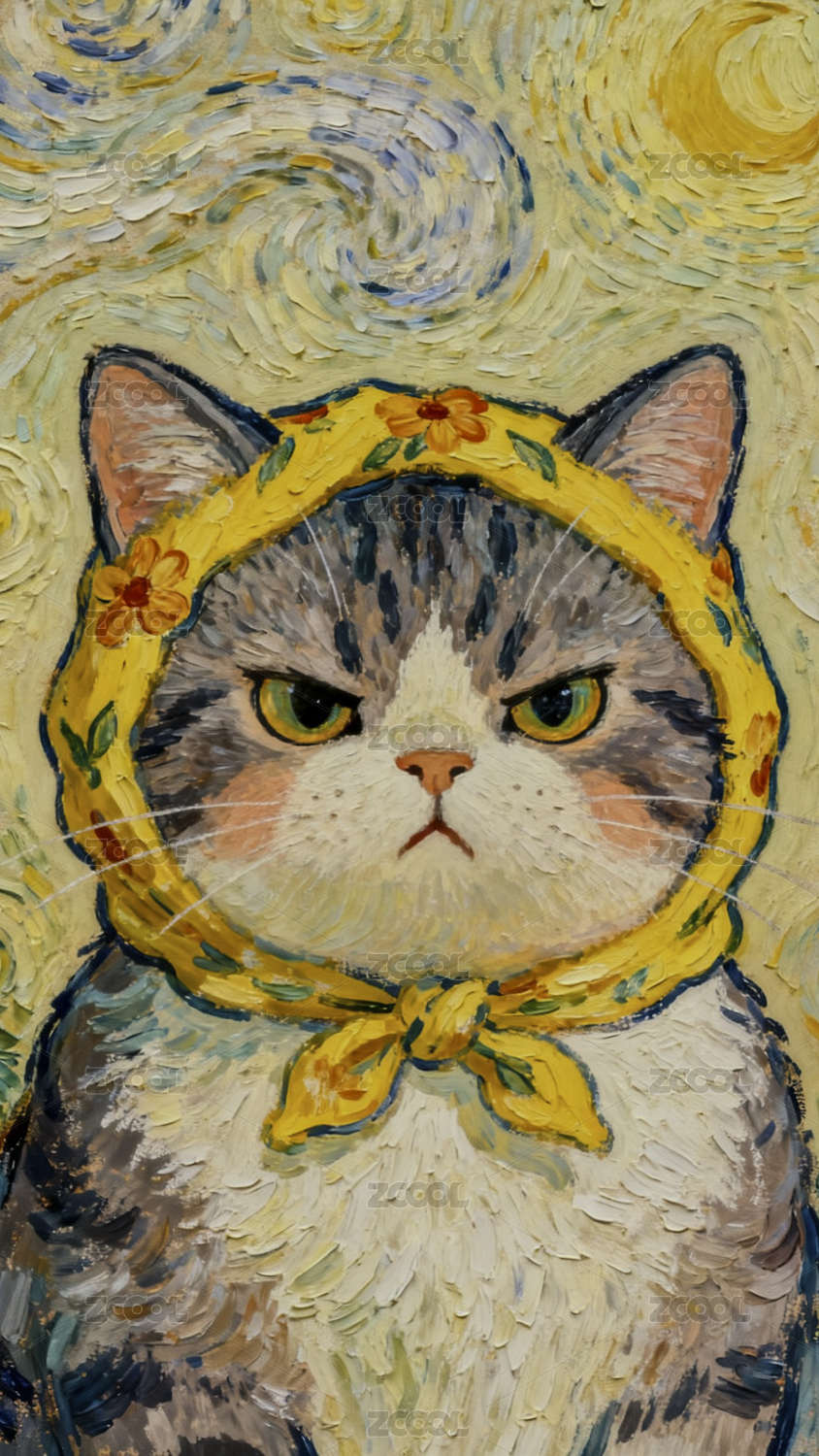 宠物,世界名画,艺术,油画,手绘,丙烯画,珍珠,少女,插画,猫咪