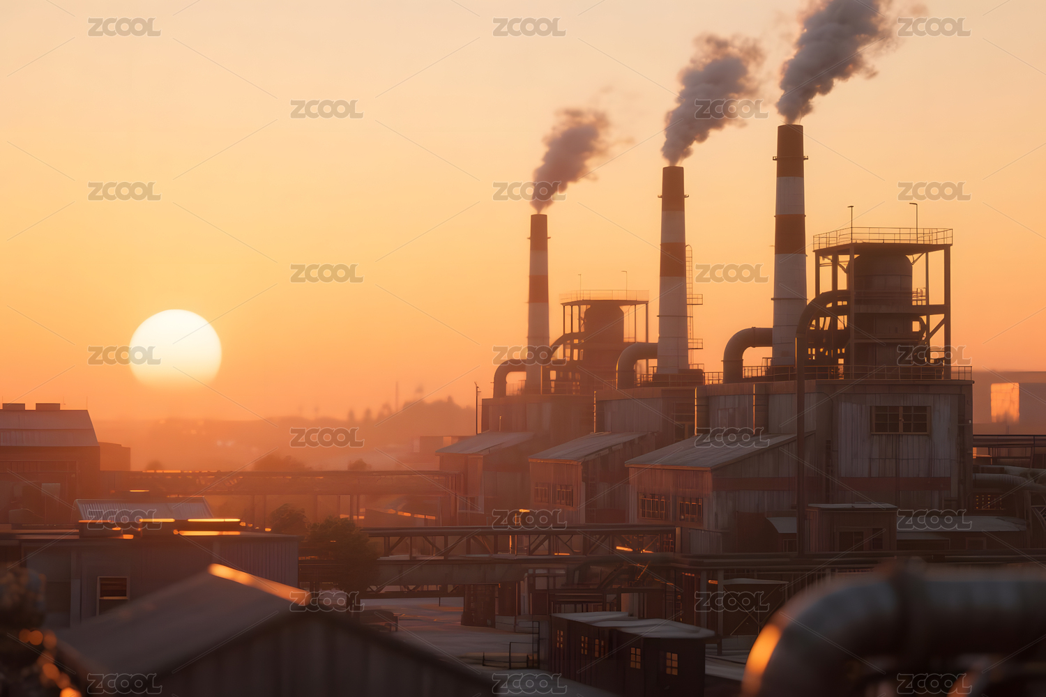 晨光,发电厂,朝阳,蓝调,剪影,雾霭,宁静,绚烂