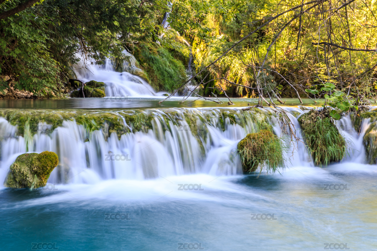 晴朗夏季午后拍摄的四川九寨沟诺日朗瀑布