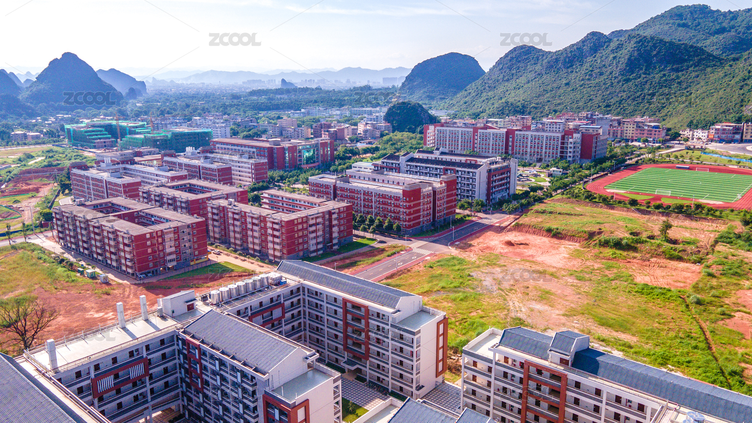 竖屏航拍中国广西桂林八里街区建筑和学校