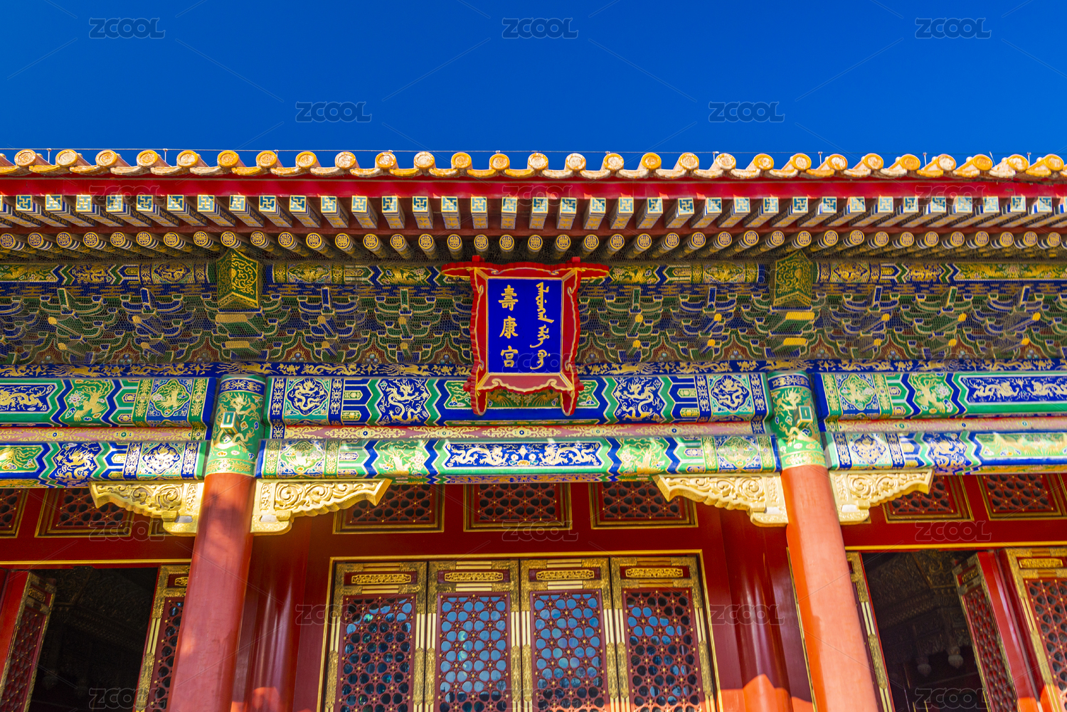 蓝天下的中国北京故宫博物馆的古宫殿寿康宫