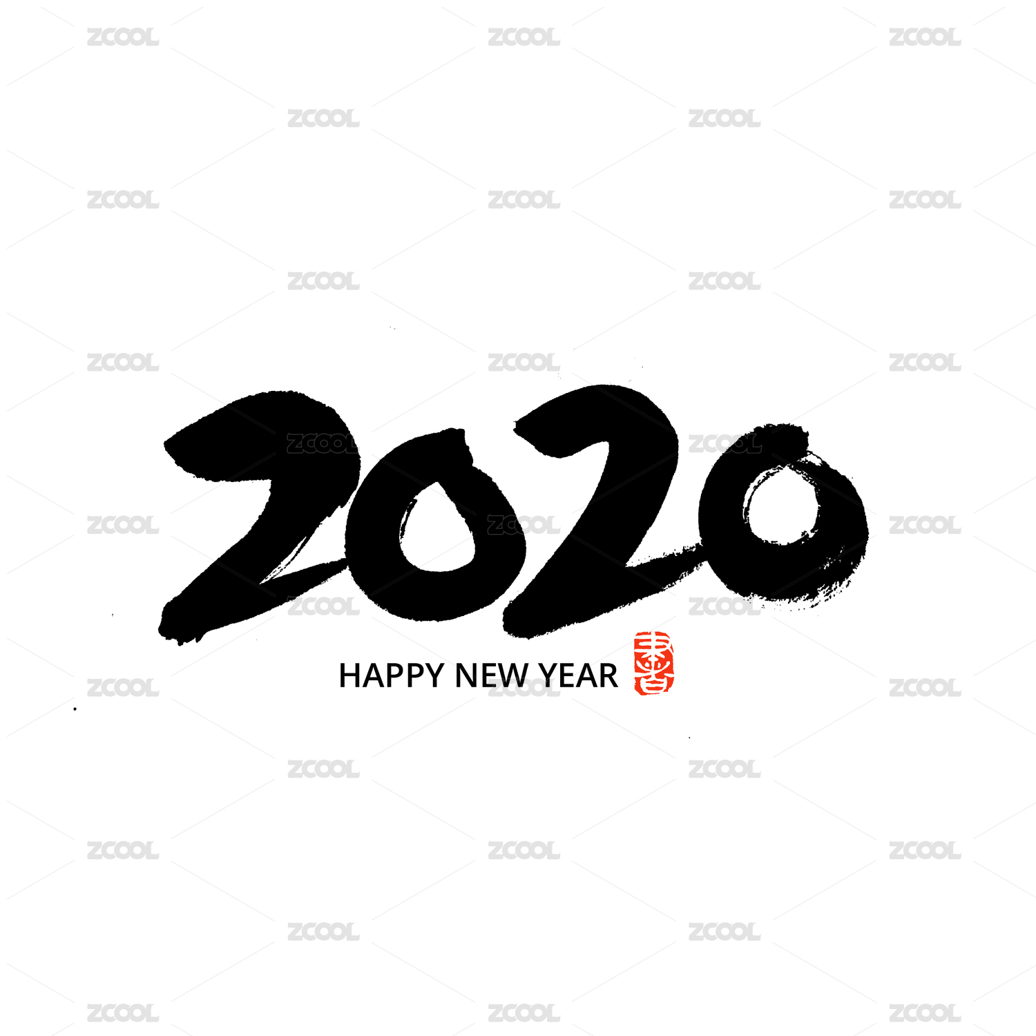 2020和鼠年结合的水墨书法笔触图形