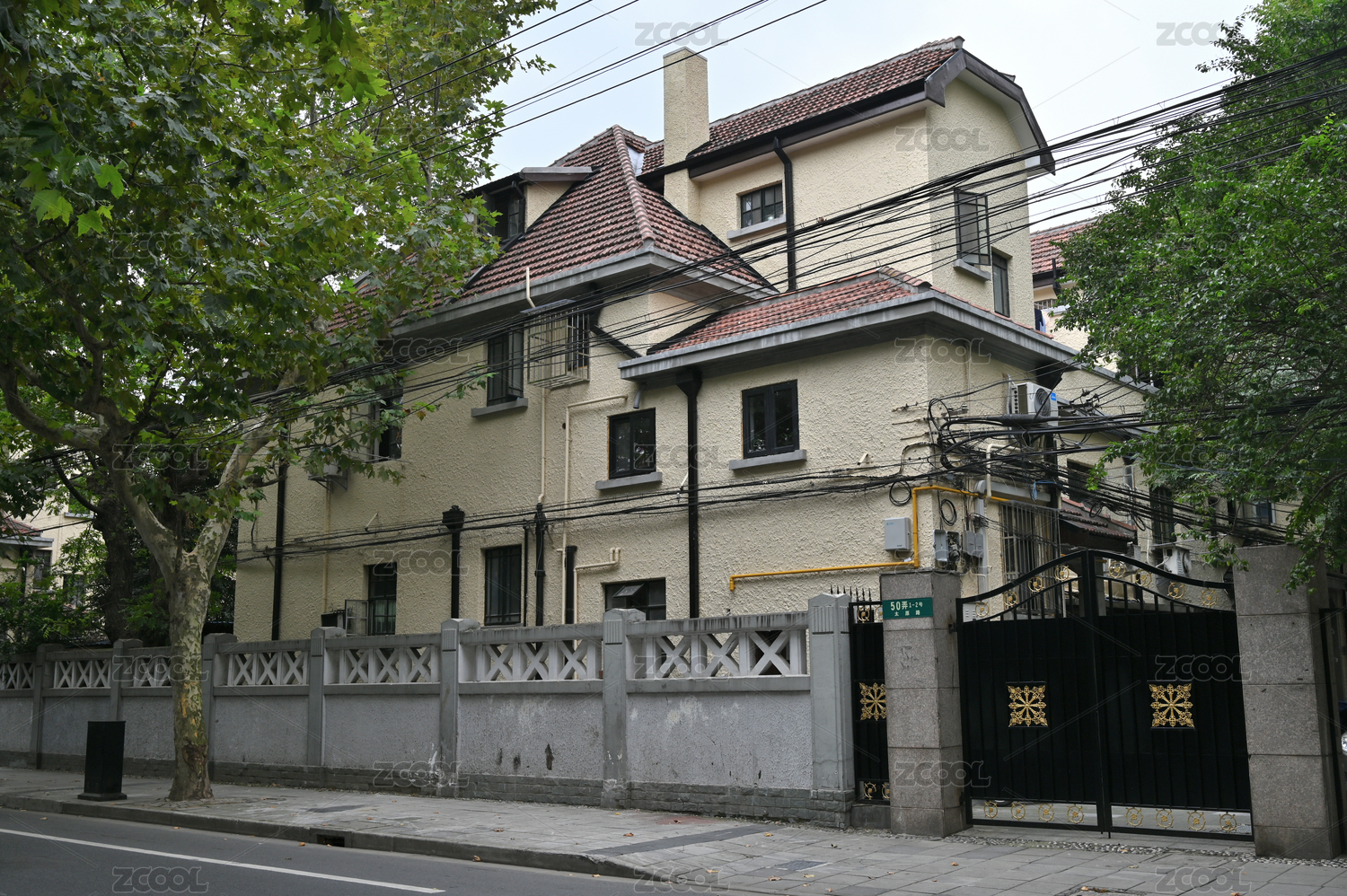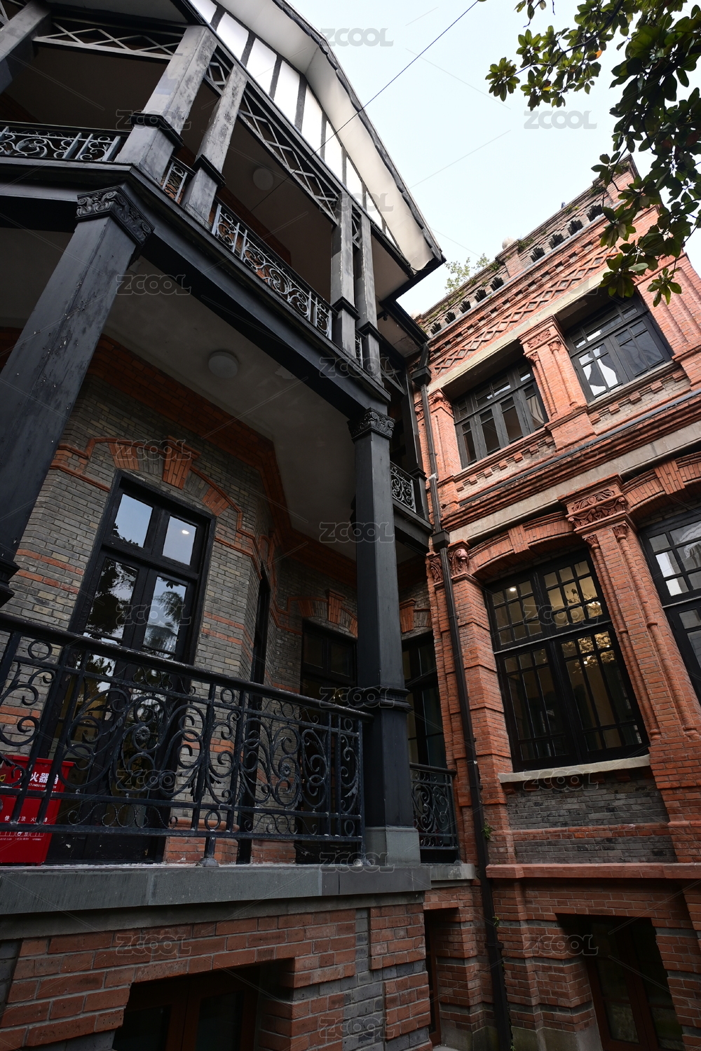 中国上海武康路欧式花园洋房的罗密欧阳台