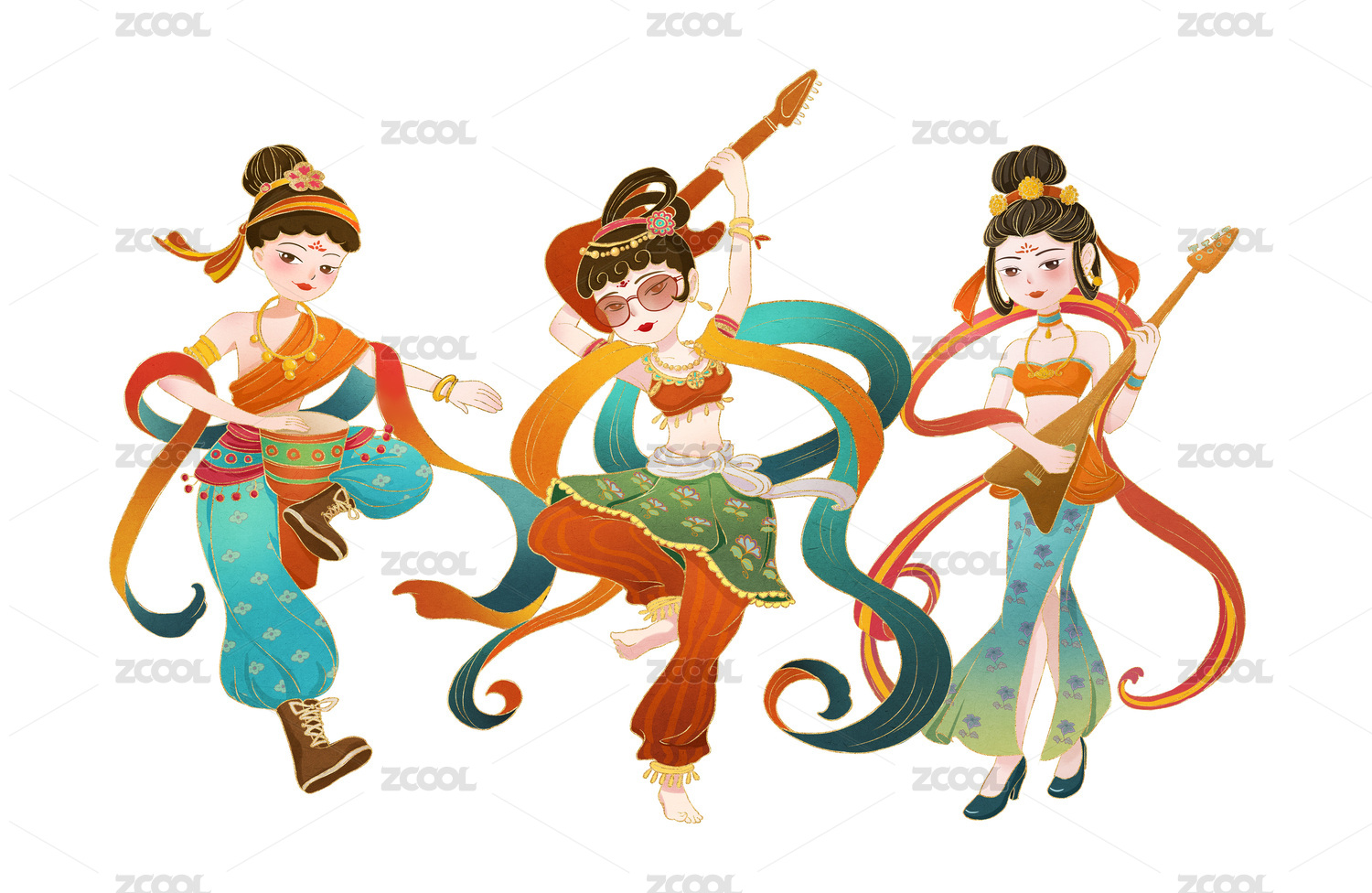 敦煌,飞天,伎乐天,国潮,吉他,贝斯,手鼓,乐队,敦煌文化,时尚