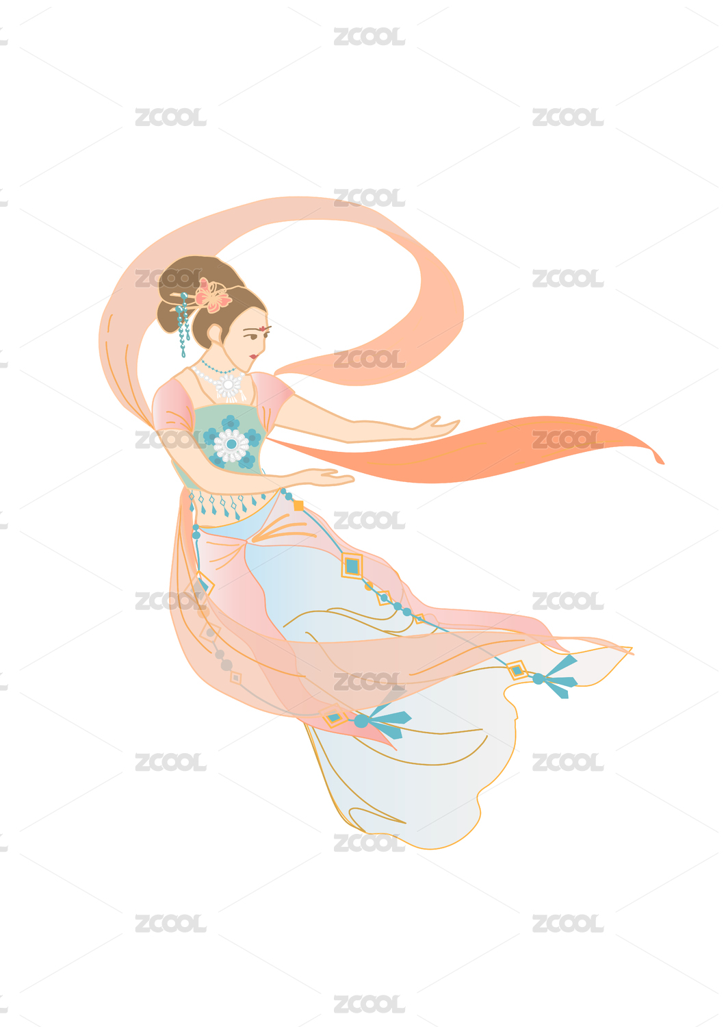 手绘插画扁平夸张飘带飞舞跳舞的美丽舞者