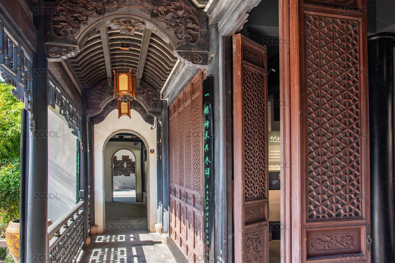 浙江海宁盐官古城金庸书院古建筑走廊