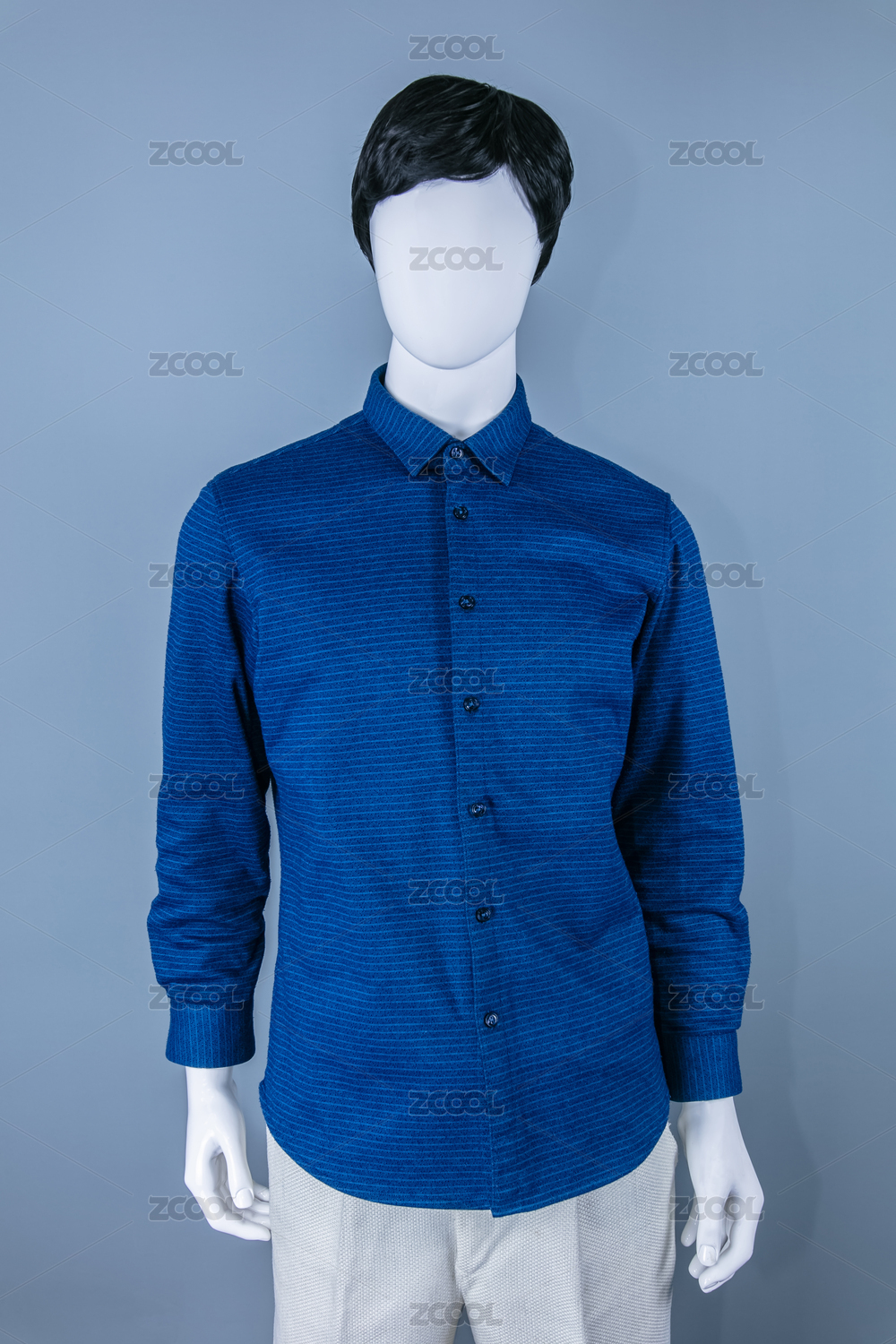 民国风男式蓝色竖条纹长袖衫内衣服饰