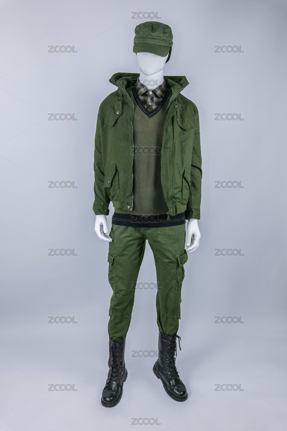 男式军绿色多口袋休闲工装服饰