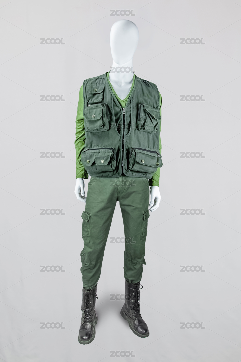 男式军绿色夏季摄影马甲服饰