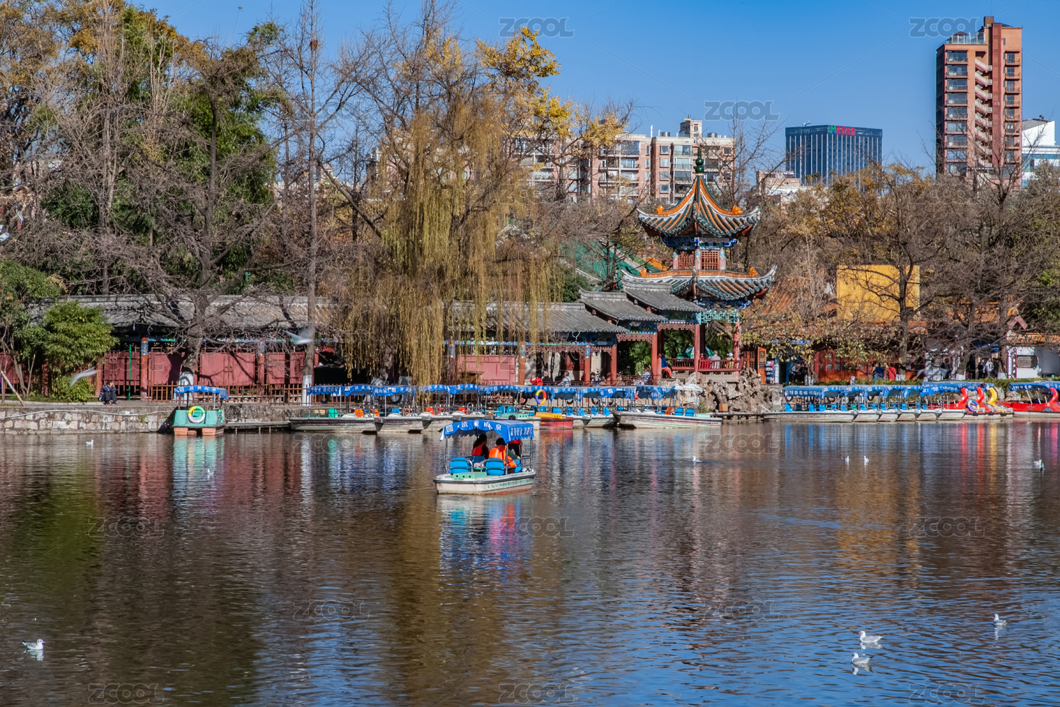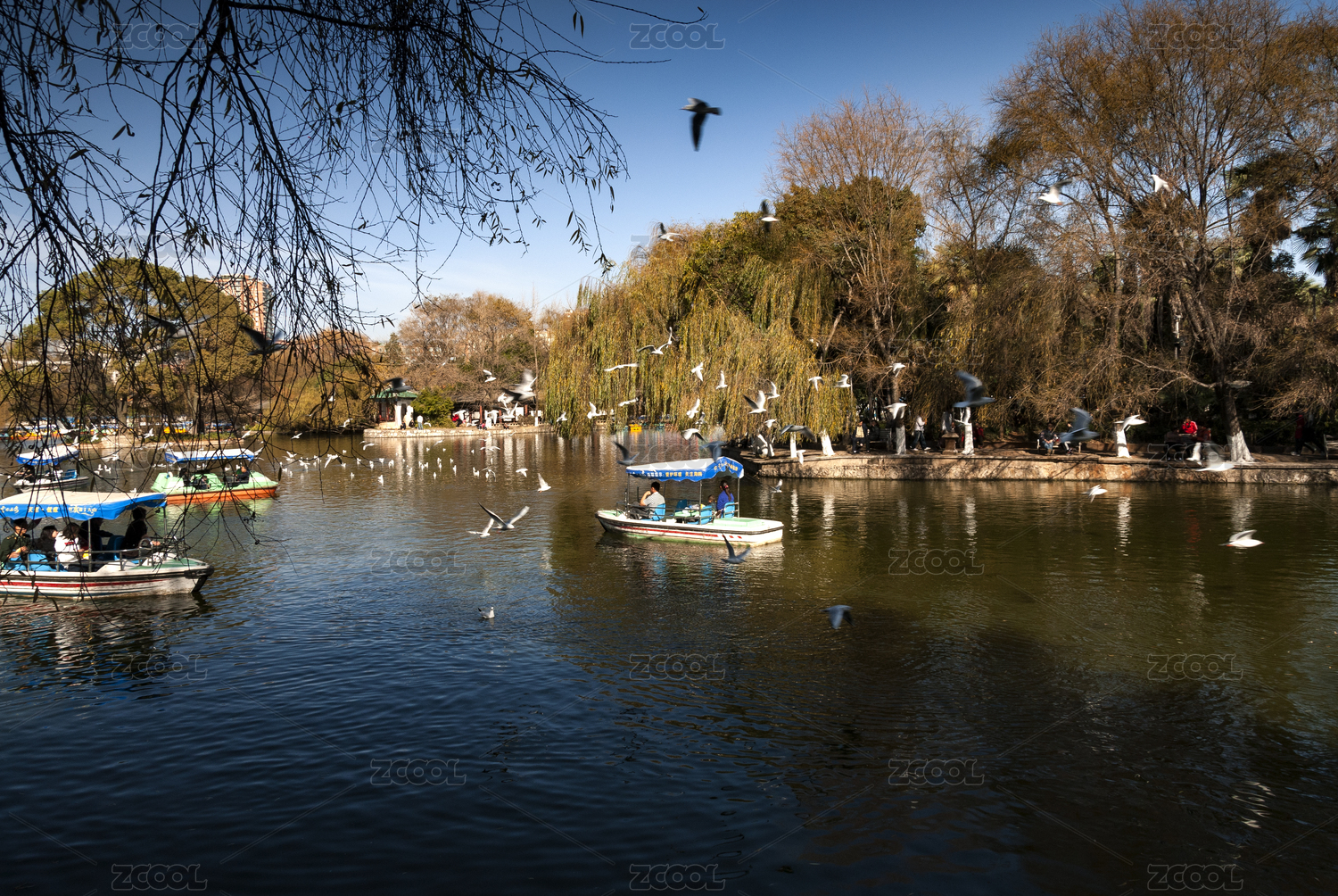 冬季云南昆明翠湖公园的海鸥