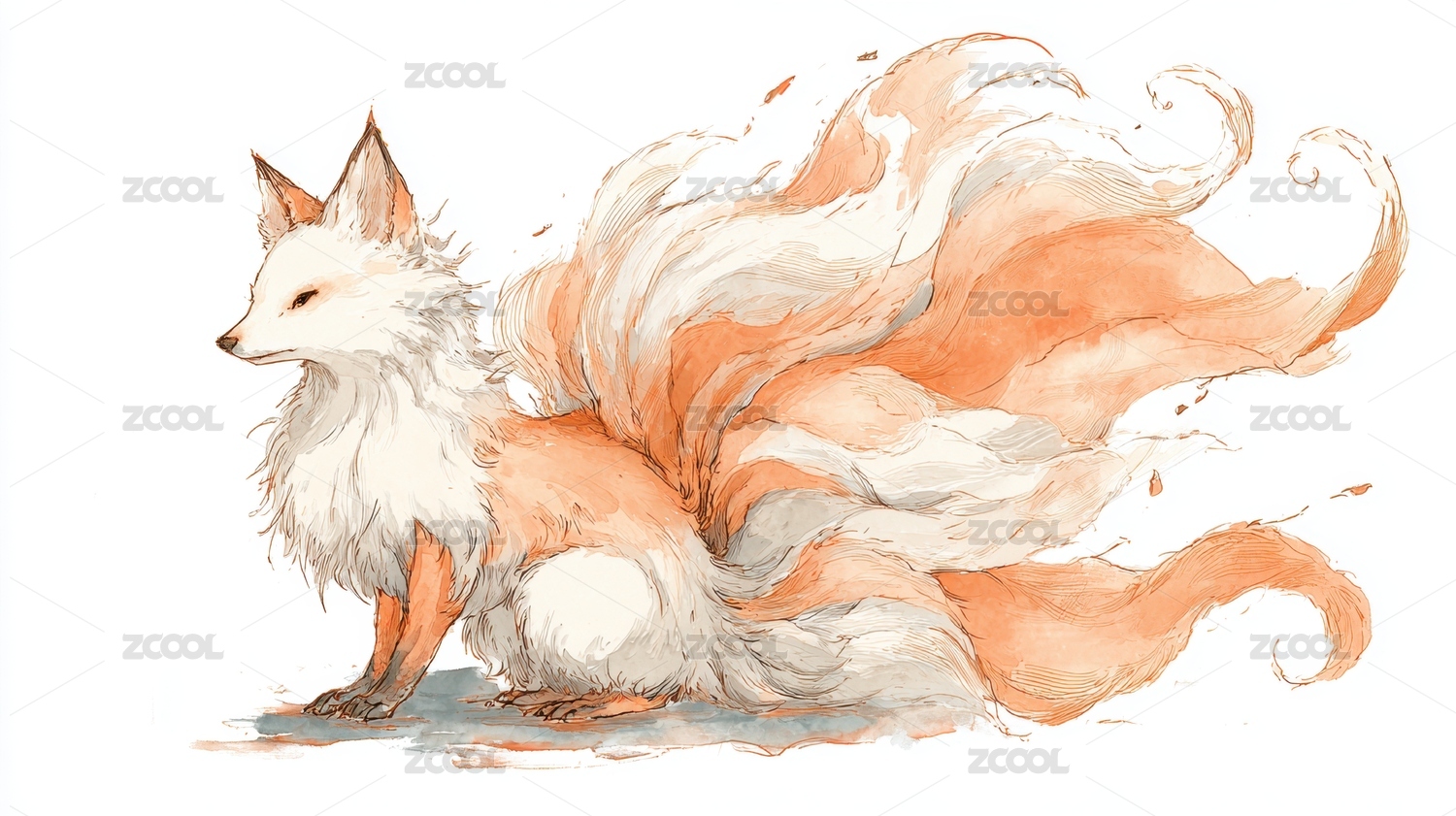九尾狐的艺术插画