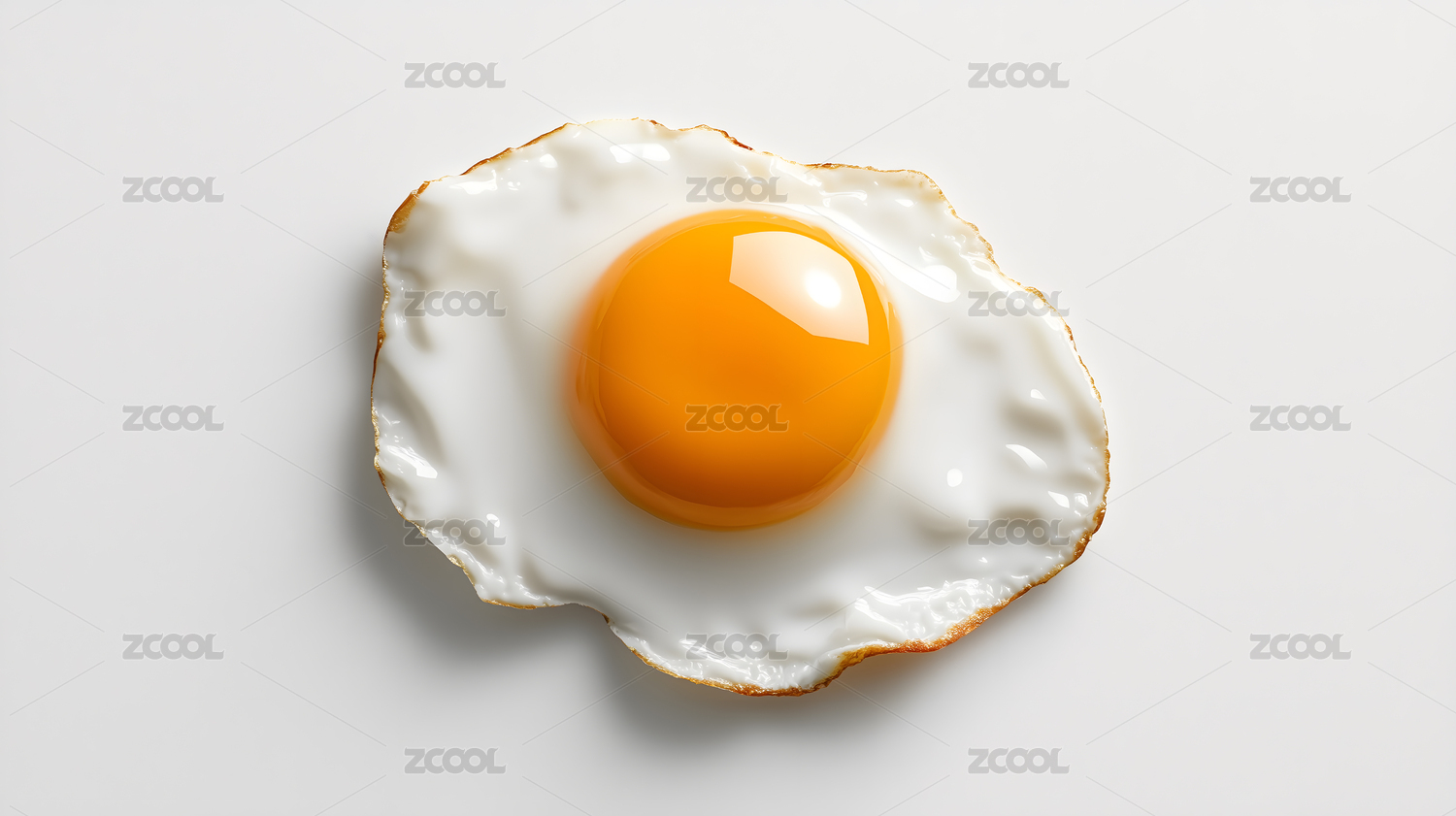 煎蛋特写,蛋白包裹蛋黄置于平面