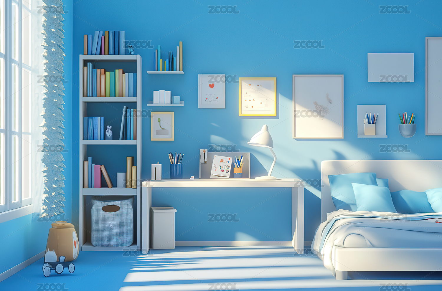 室内卧室3D温馨卡通风格三维渲染概念背景