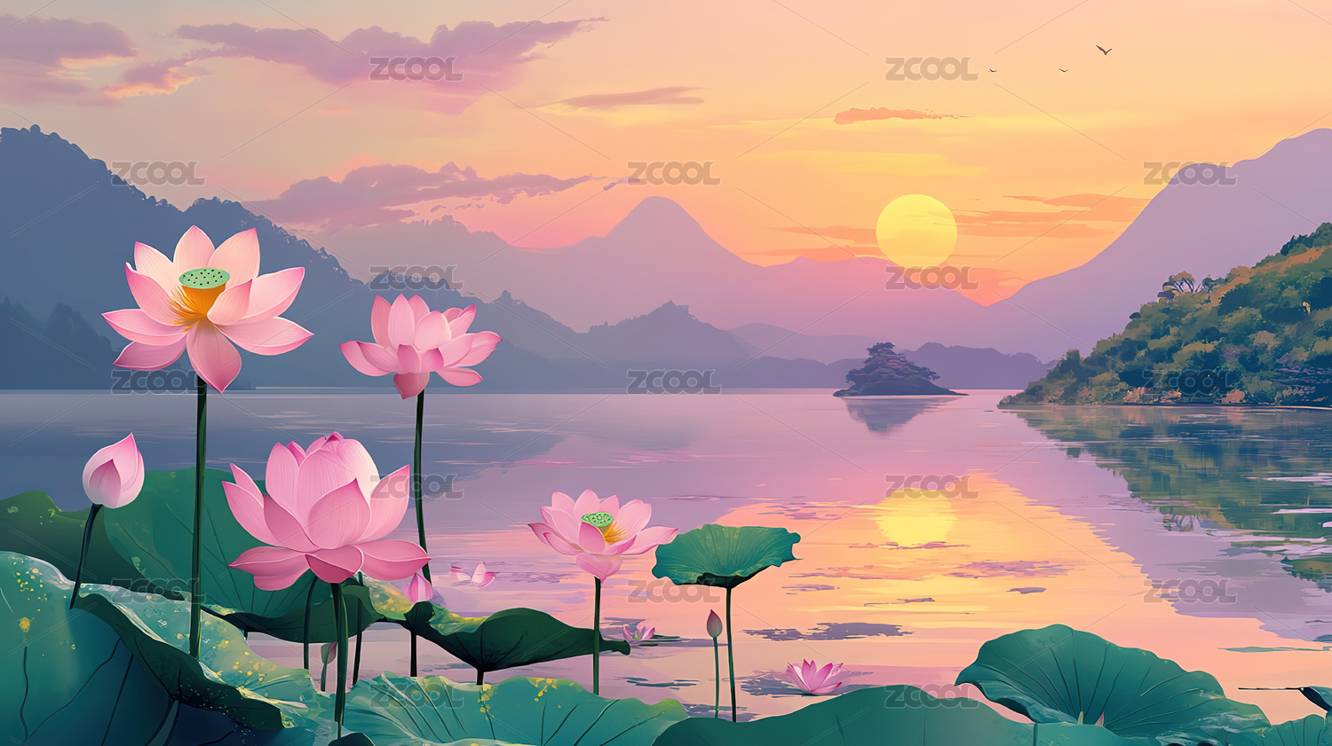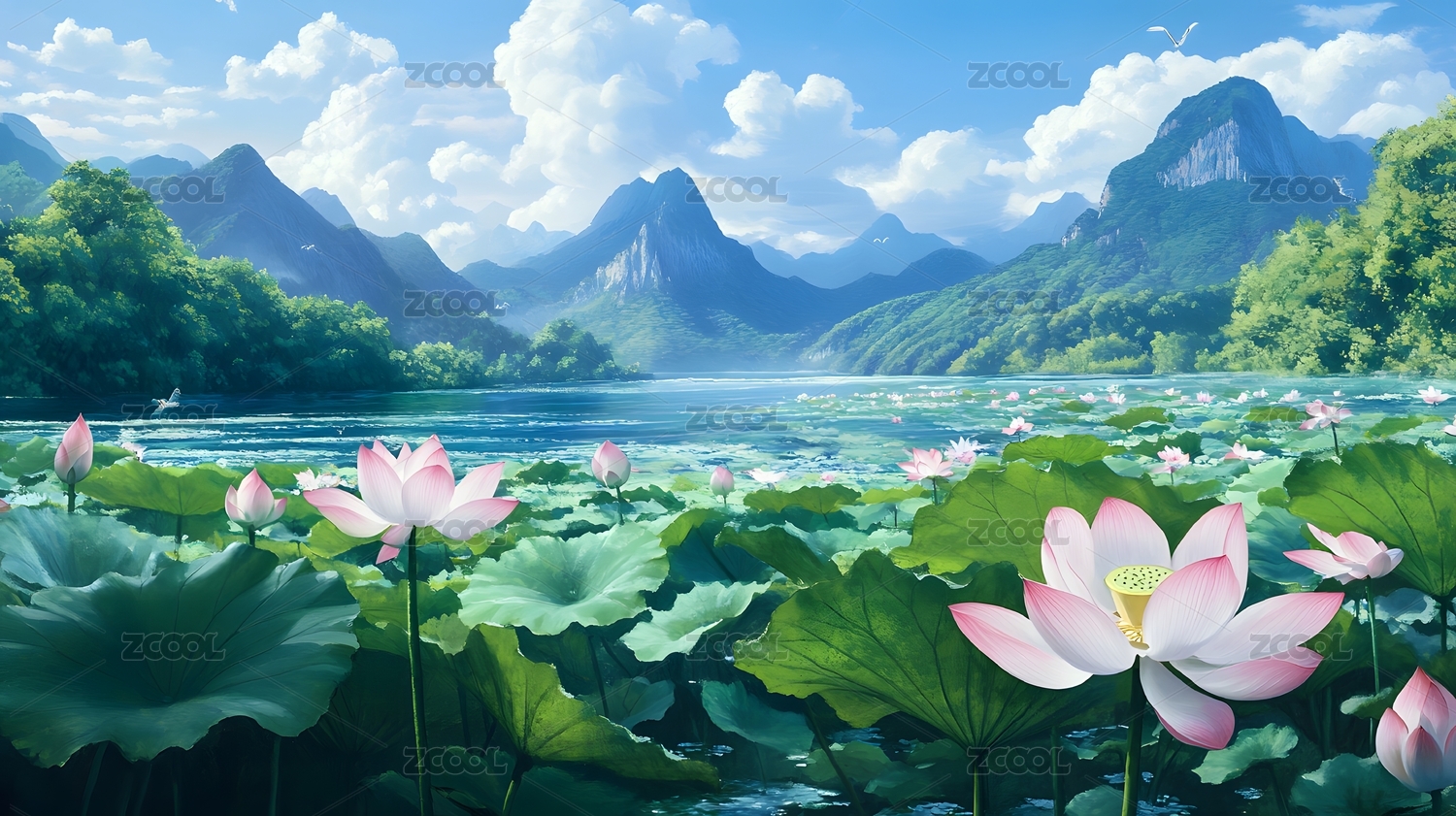 AI数字艺术,户外,自然,天空,夏天,自然美,插画,宁静