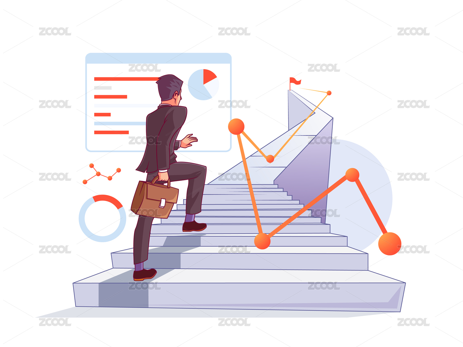 穿西装的男人爬楼梯矢量插画