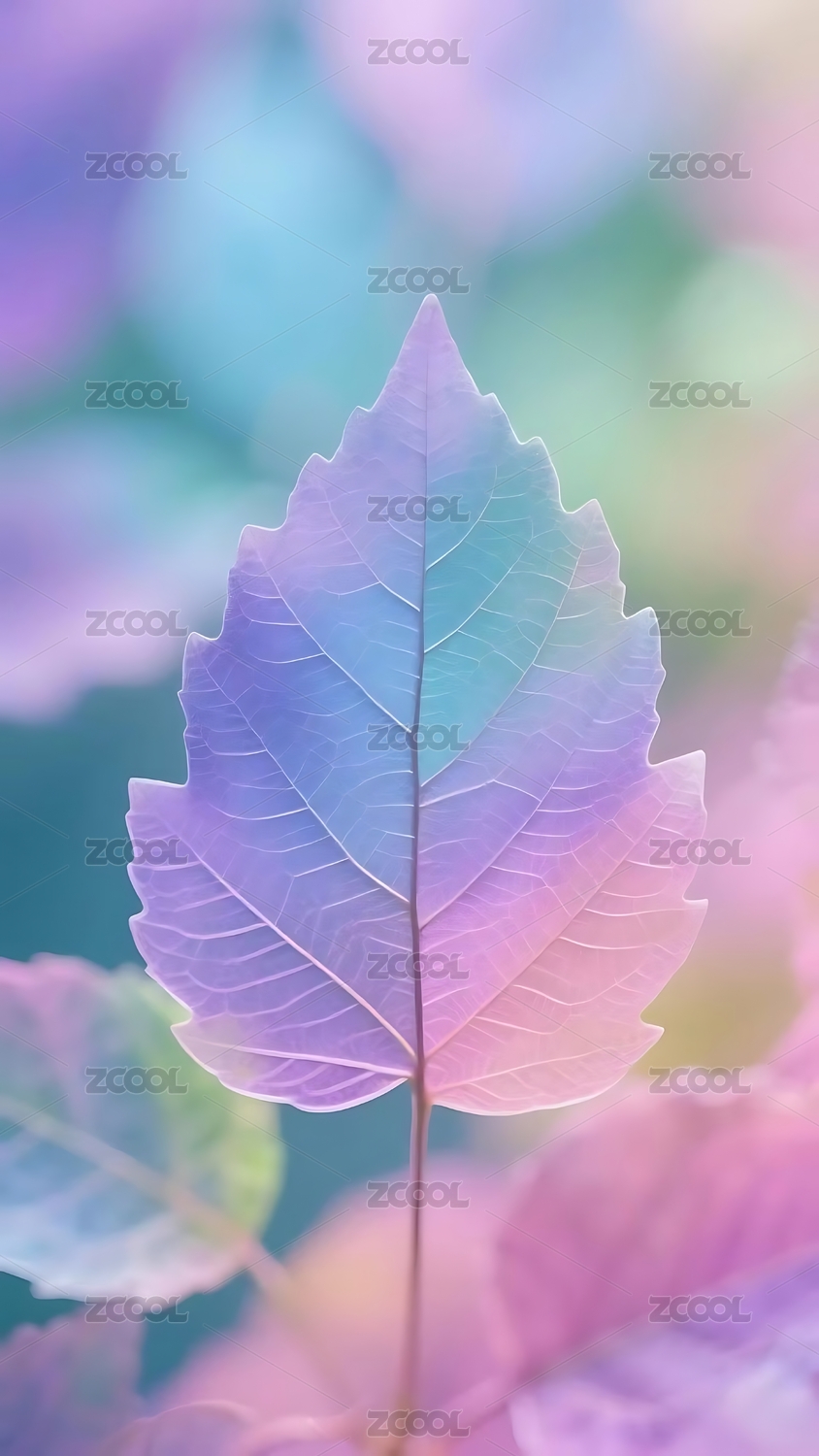 蓝粉色治愈朦胧树叶艺术背景壁纸