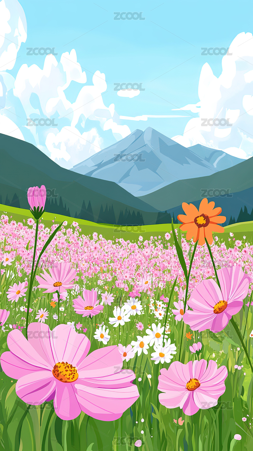 春天,自然风景,自然,大自然,植物,绿植,花草树木,清新,天空,矢量