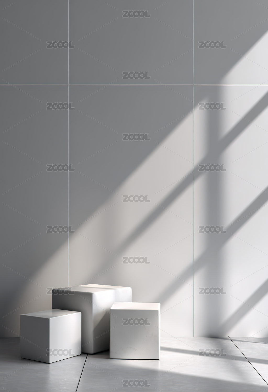 三个白色立方体在光影中