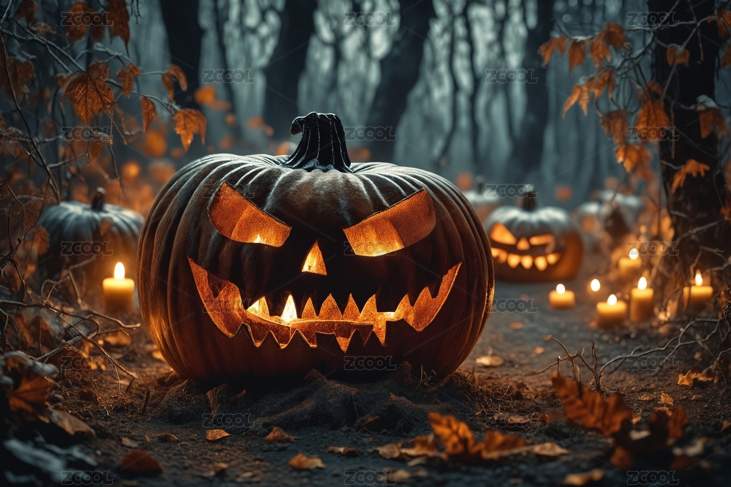 万圣节,南瓜,灯光,森林,树木,夜晚,鬼魅,可怕,传统,节日