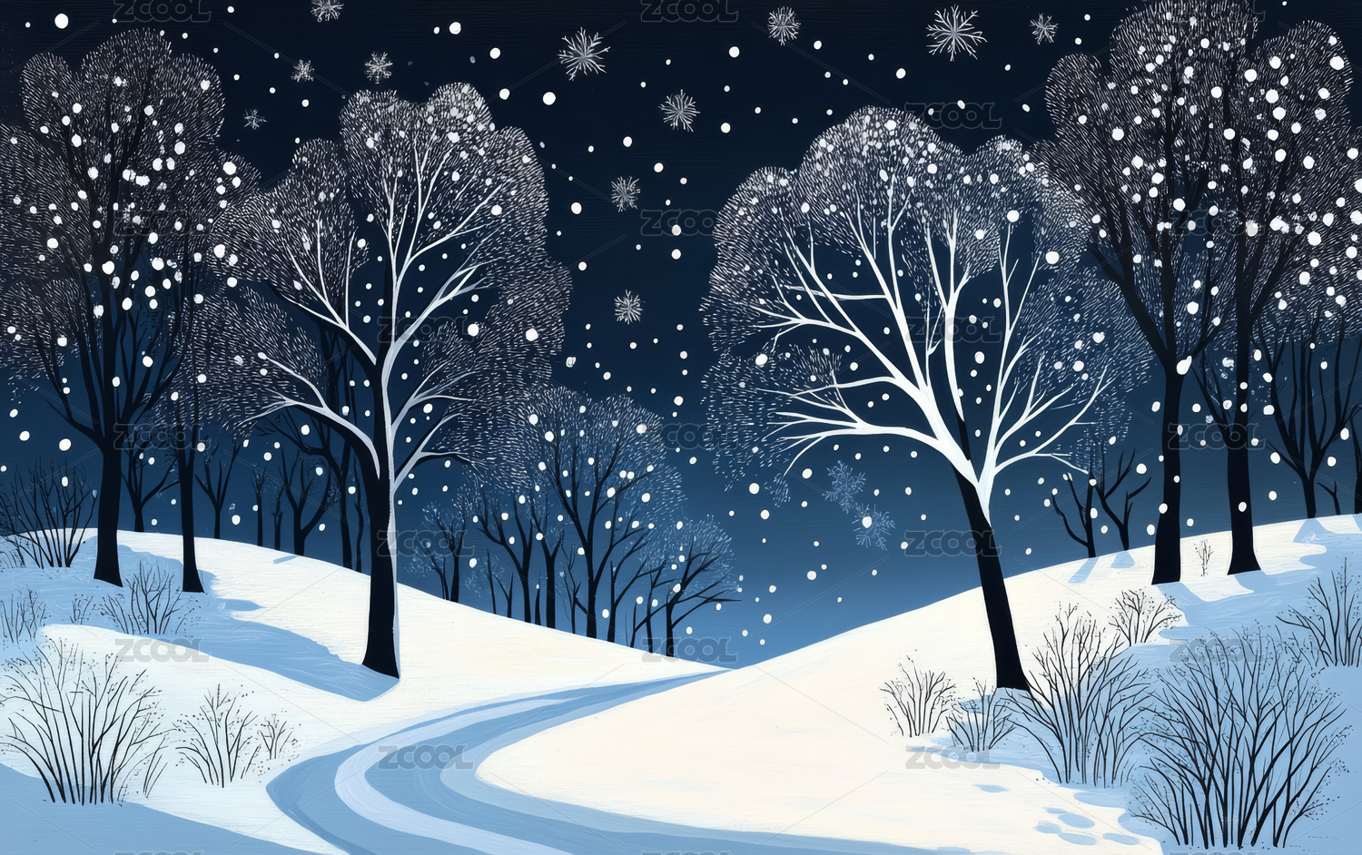 冬夜雪景主题