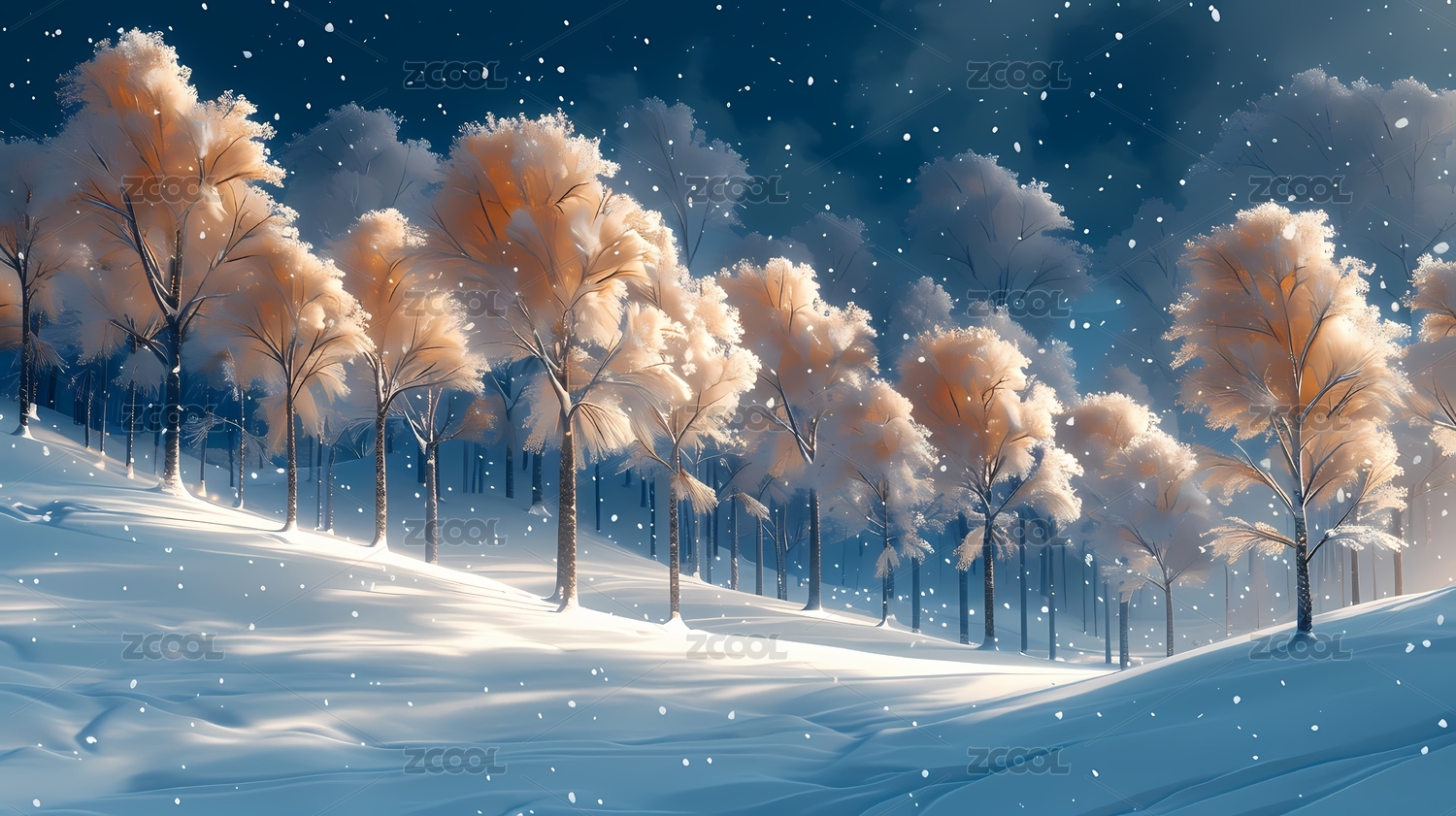 数码雪景树木童话抽象插画海报网页背景