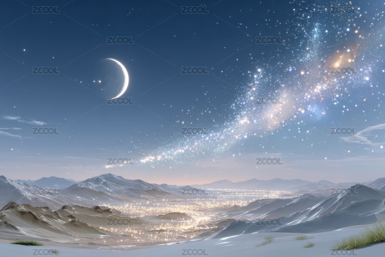 夜景,城市,灯光,河流,山脉,星空,月亮,幻想,美丽,静谧