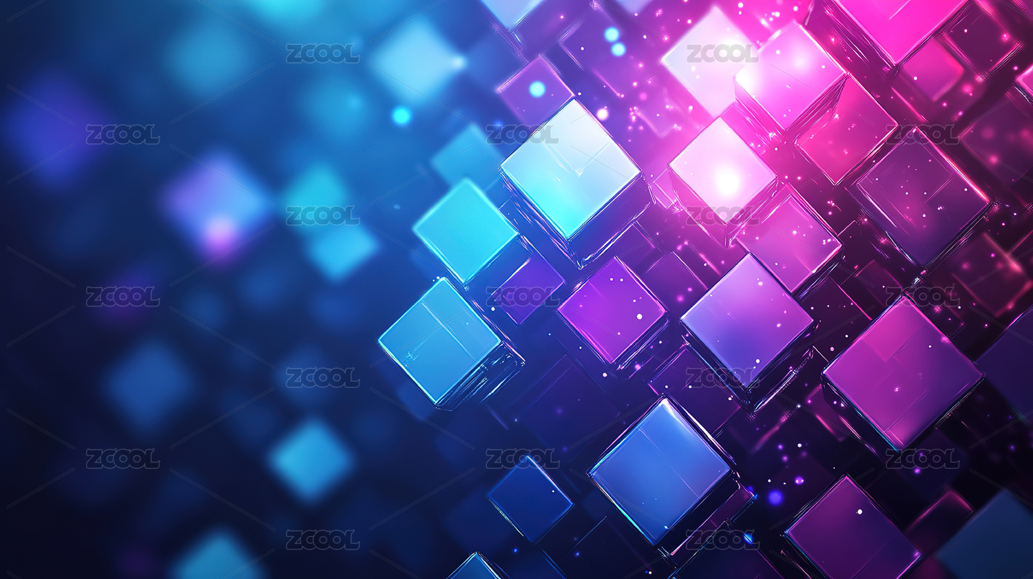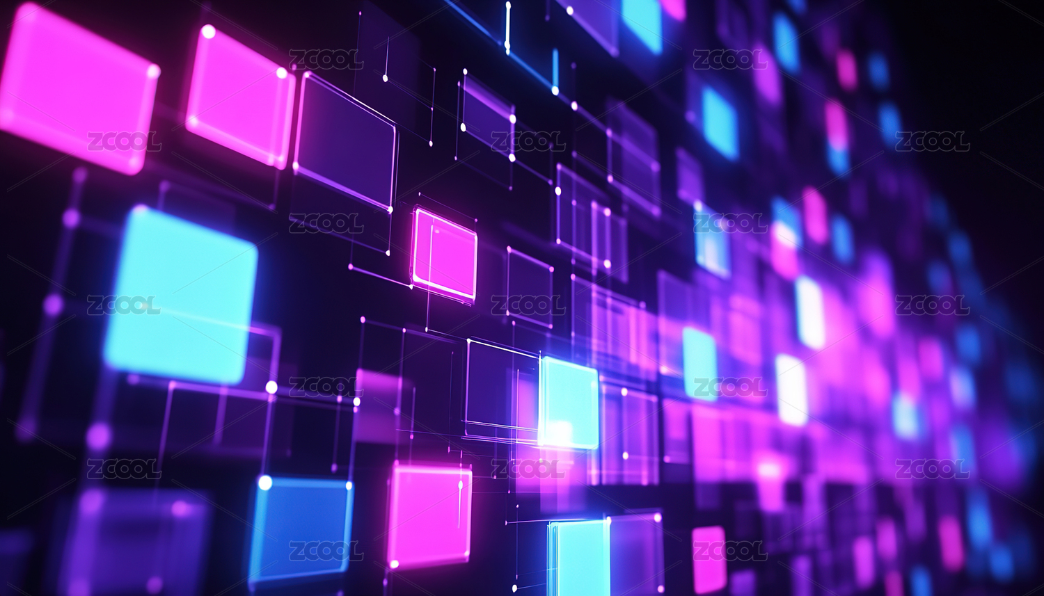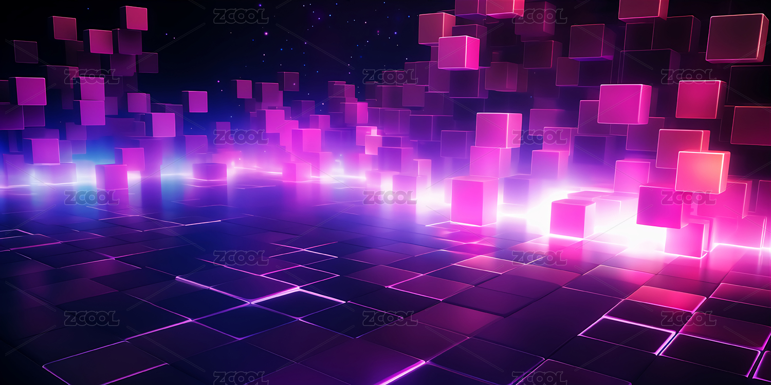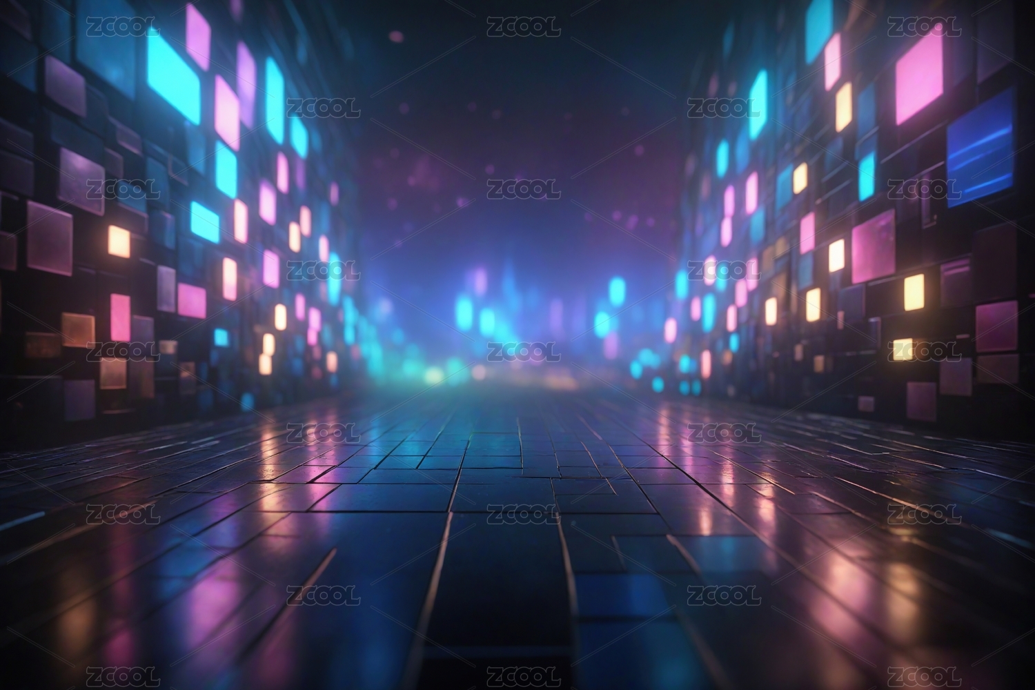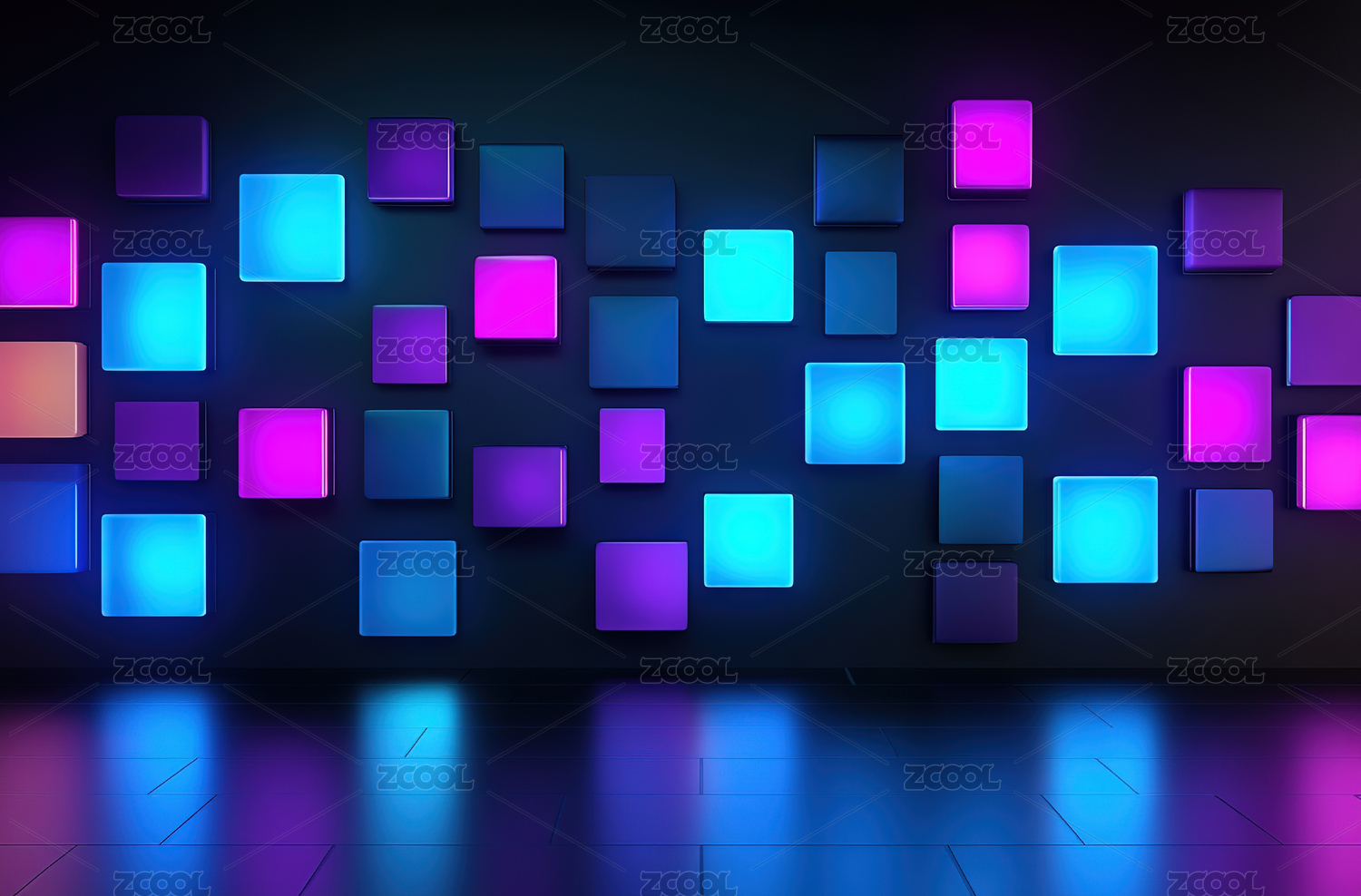 霓虹,方块,墙面,蓝色,紫色,粉色,光源,反射,地面,色彩