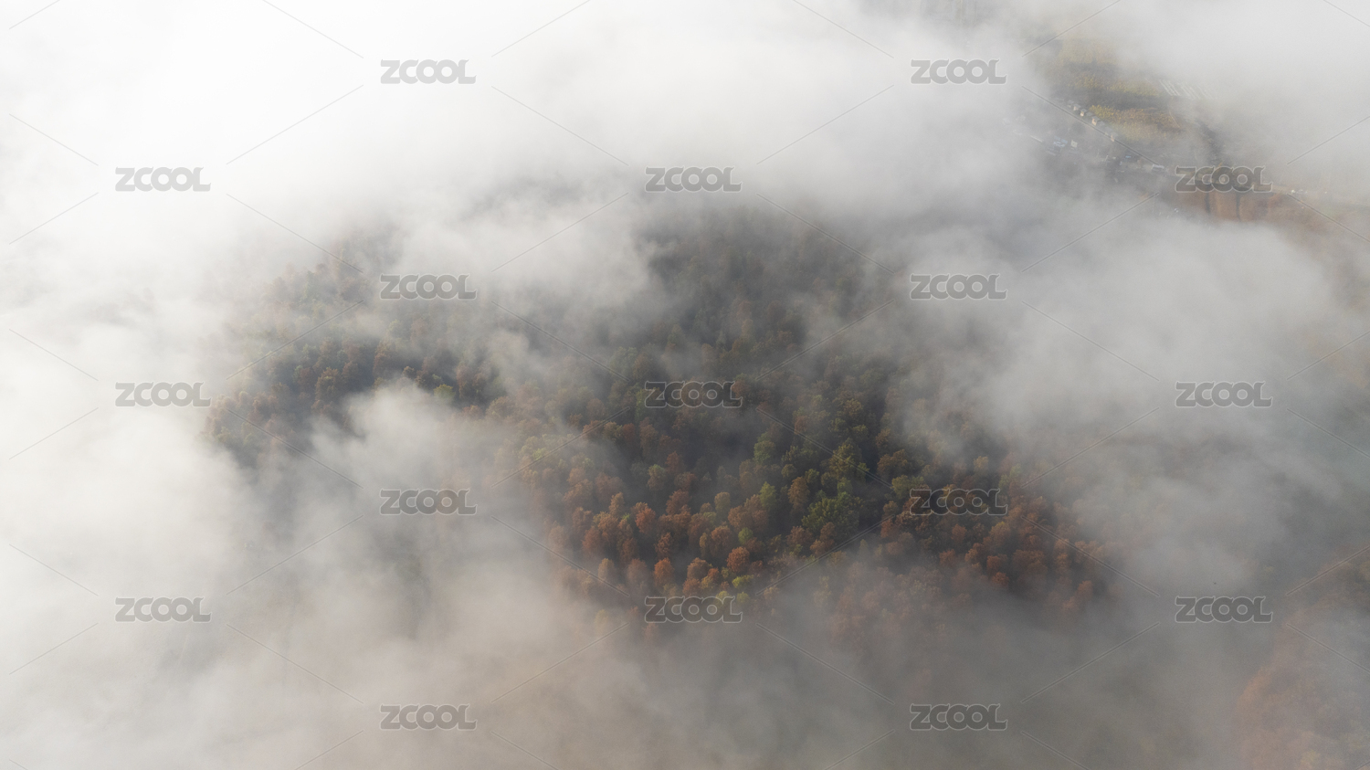 航拍秋天云雾缭绕的中国新疆禾木风景区