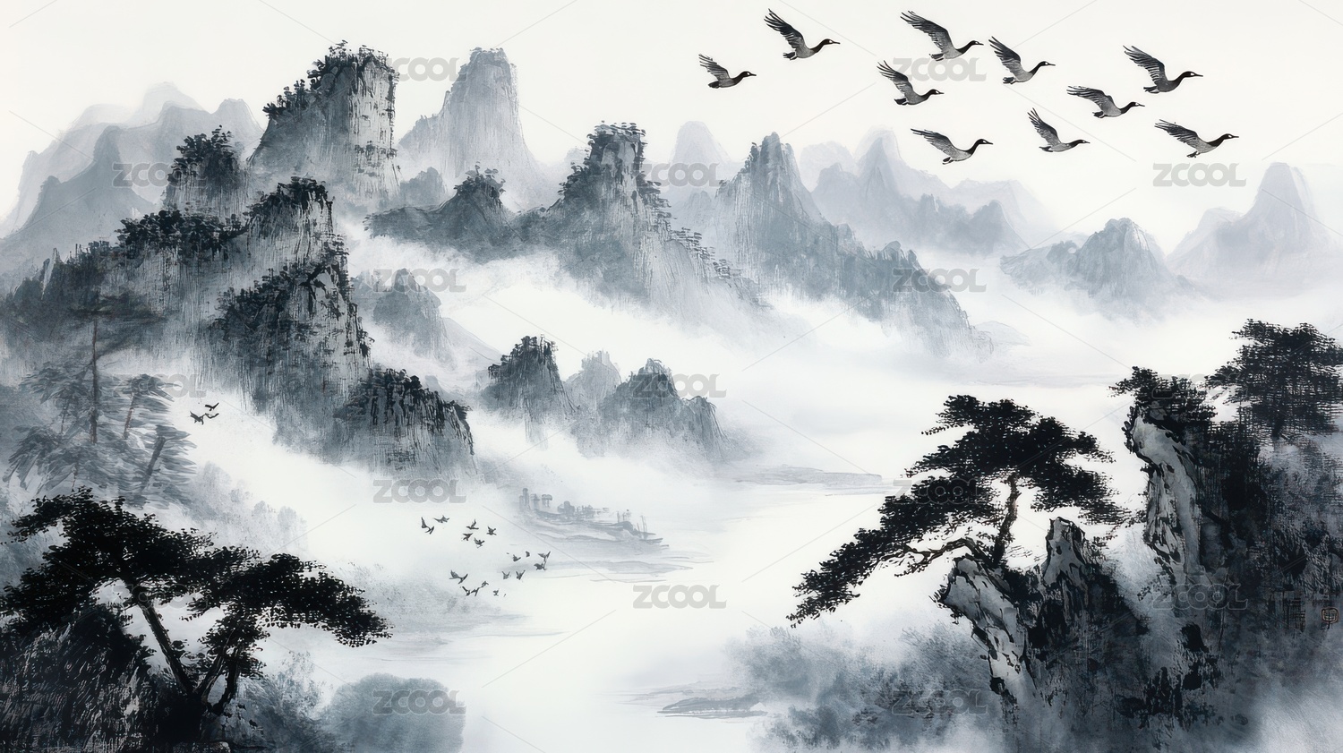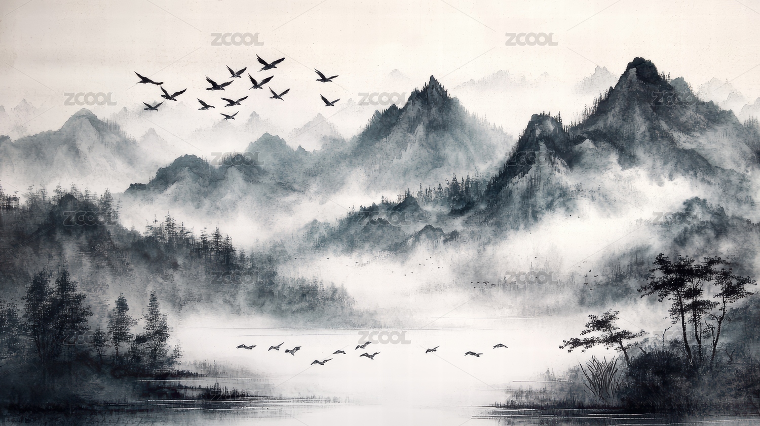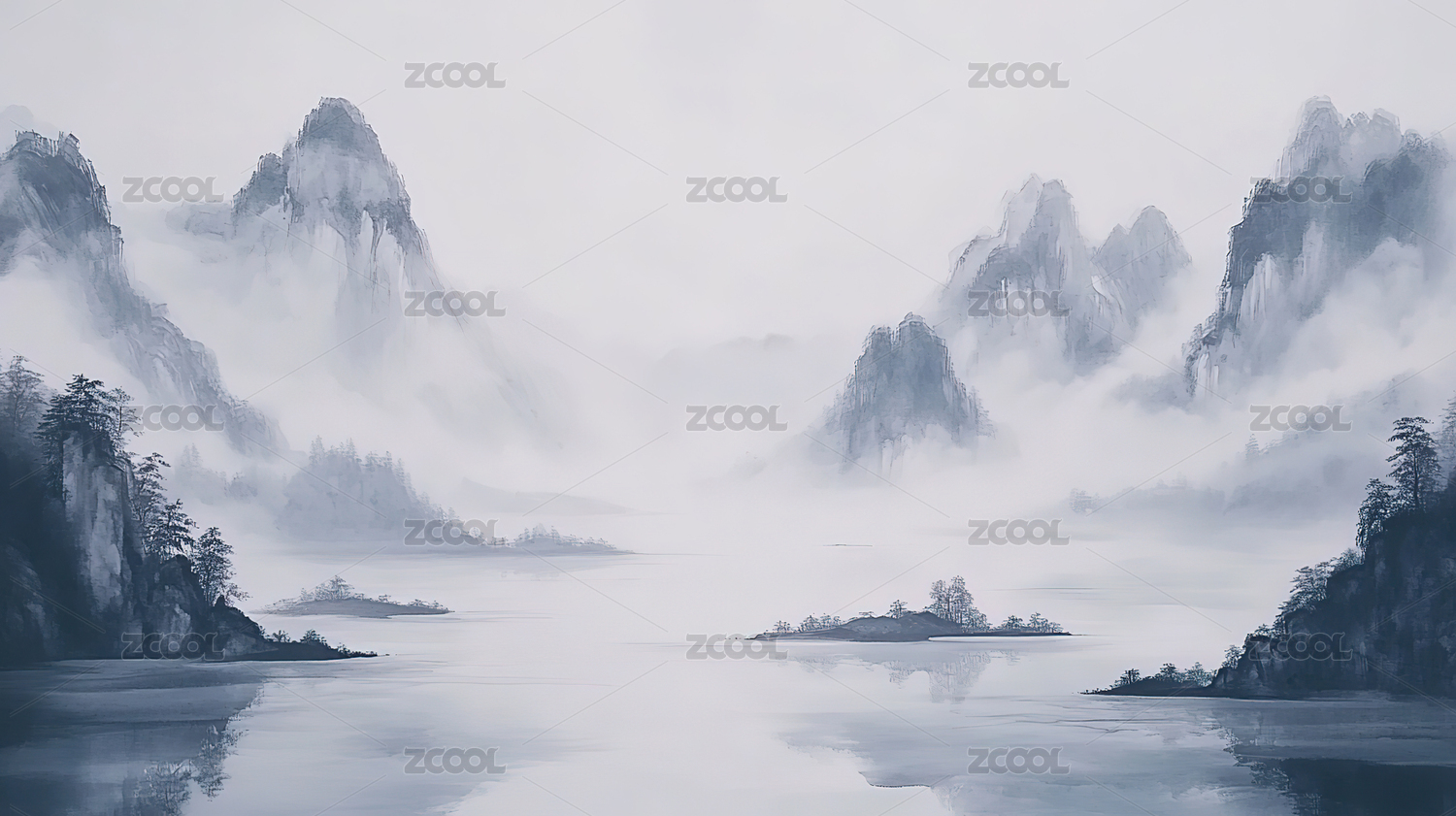 自然,植物,风景,中国画,天空,湖,艺术,枝