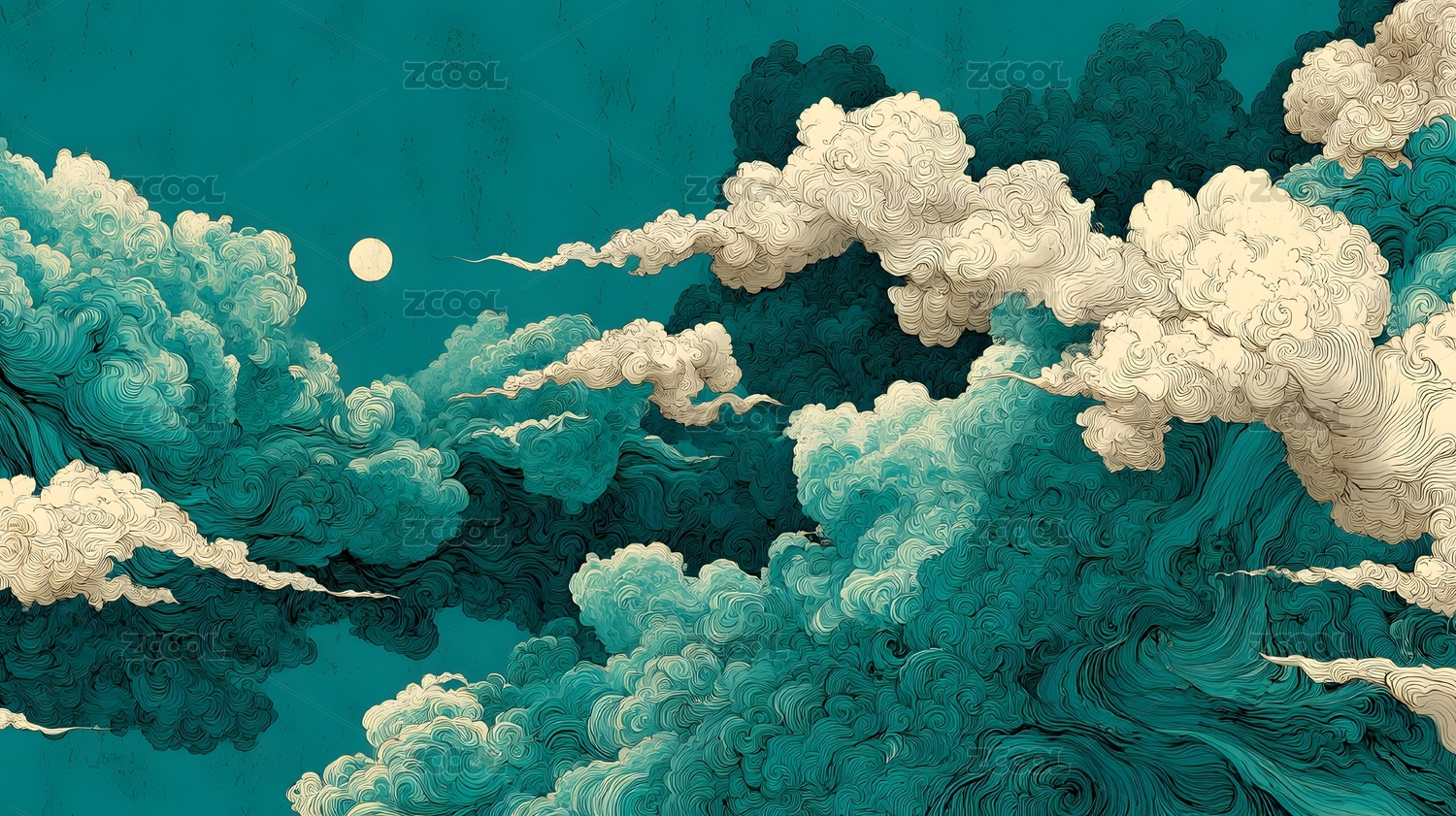 云海波涛与圆月