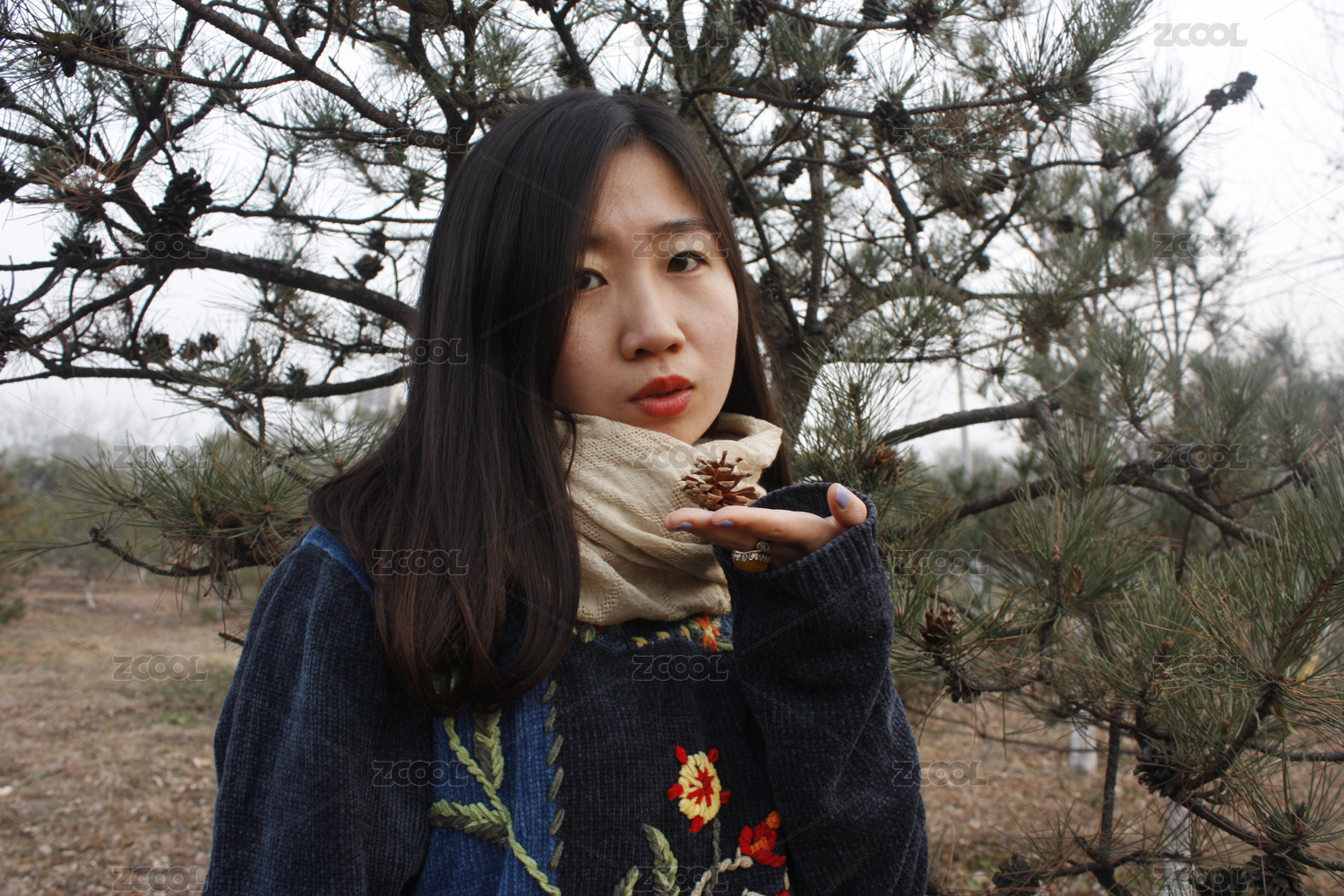 春天在北京奥林匹克森林公园的女孩