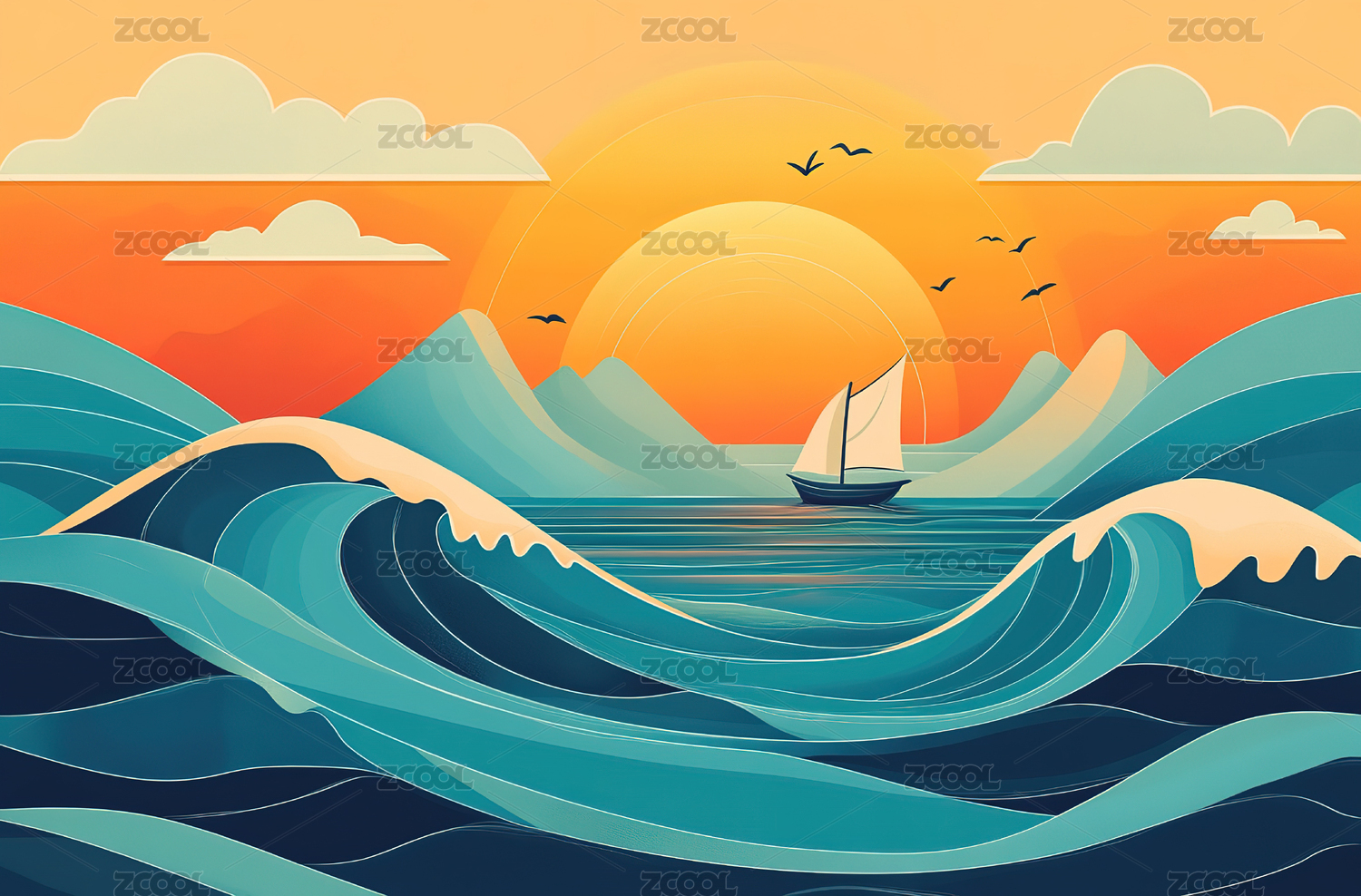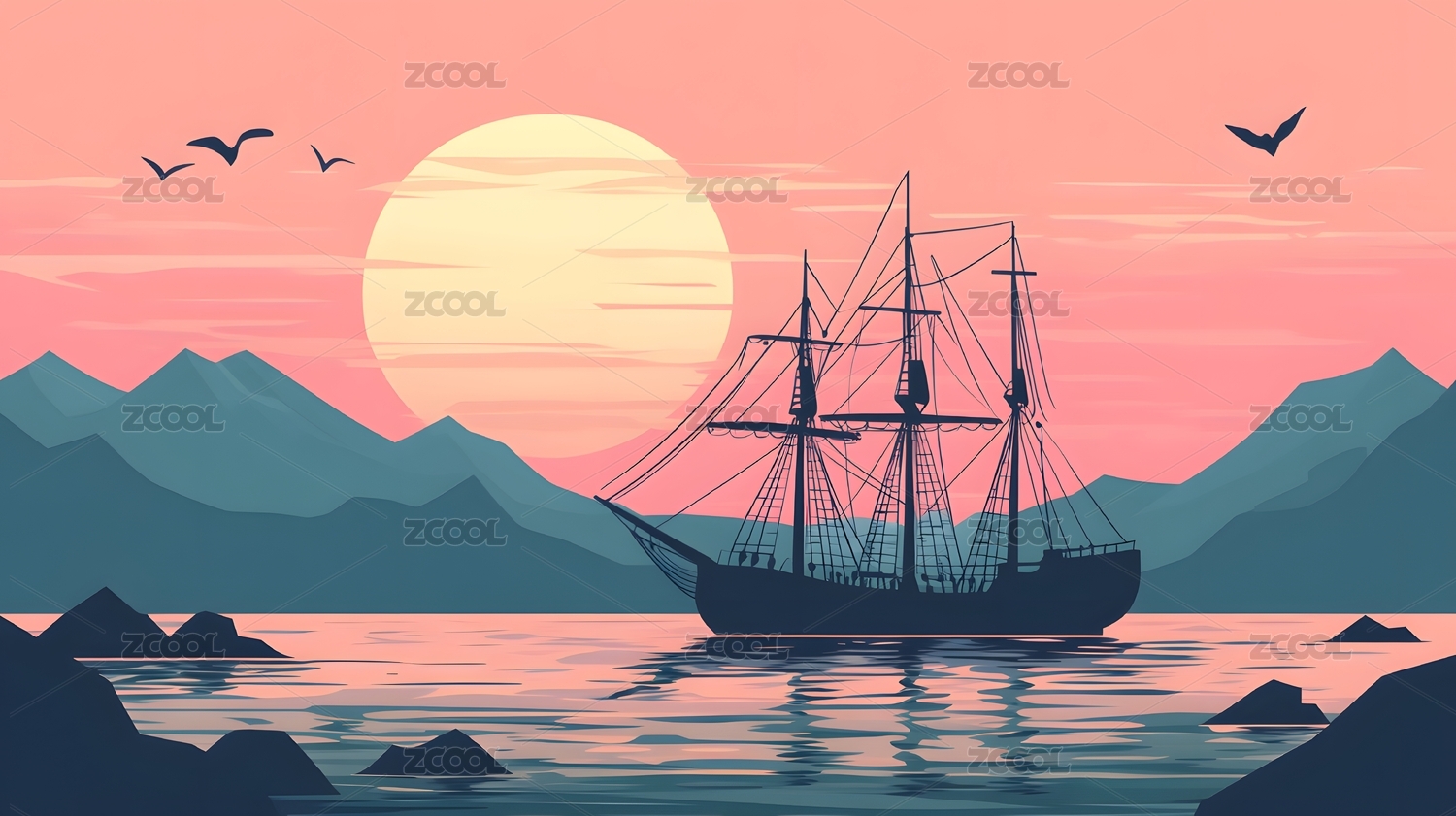 国庆假日出发旅游卡通豪华轮船交通运输插画